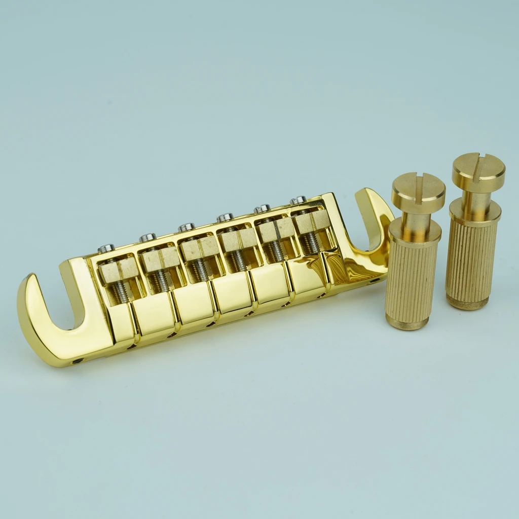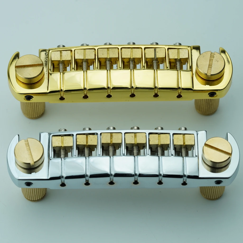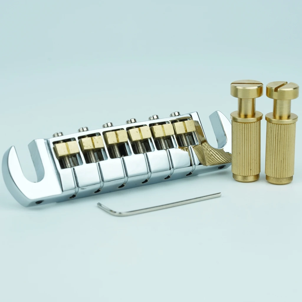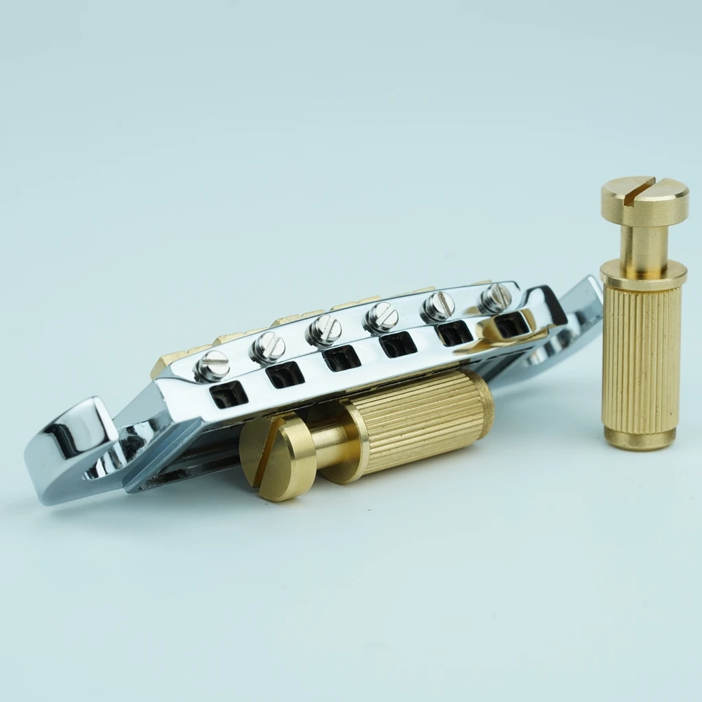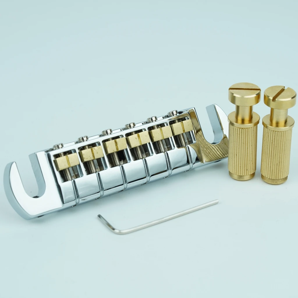 Elevate your playing experience with this premium electric guitar bridge designed for jazz and hollow body guitars. Crafted from durable zinc alloy and copper components, it is offered in two stunning finishes: golden chromium (GD) and polished silver (CR). This bridge enhances stability and sustain, ensuring superior performance. User-friendly installation is a breeze, thanks to the circular adjustment knobs and square tuning screws. Its versatile compatibility makes it an ideal upgrade for musicians looking to enhance both the sound quality and aesthetic appeal of their instrument. Upgrade your guitar today and enjoy a new level of musical expression!