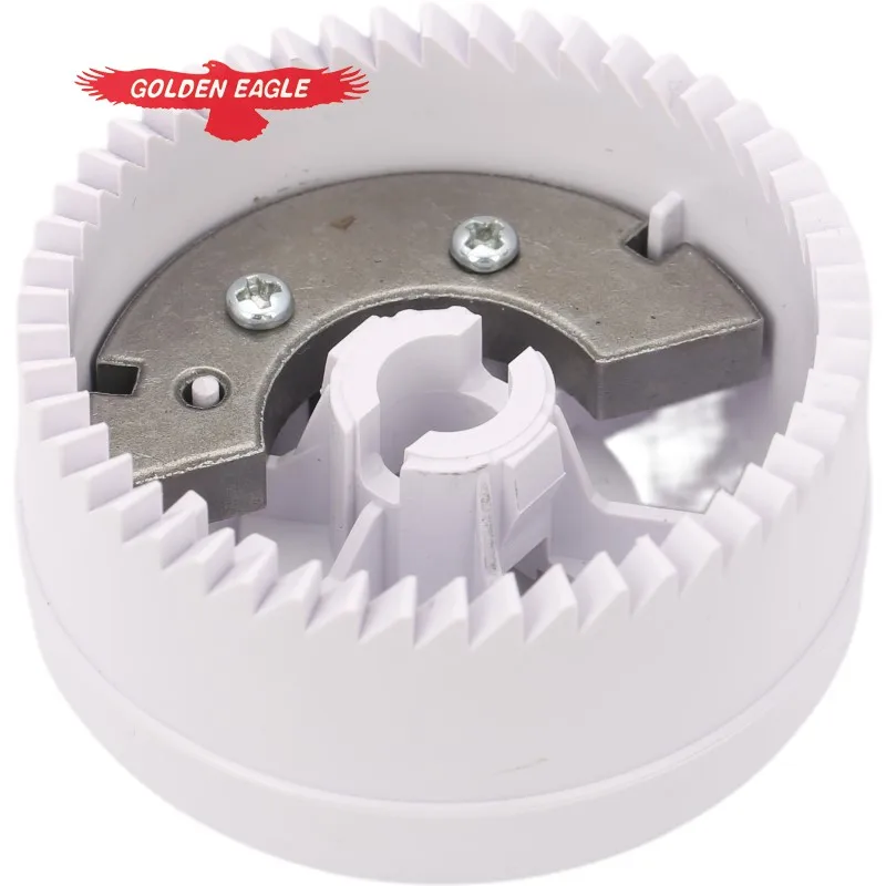 Upgrade your household sewing experience with this high-quality internal component from Golden Eagle. Featuring a durable, white circular design with a textured outer edge, it ensures a firm grip and precise handling. The sleek metallic interior, with a matte finish and a central slot, facilitates smooth operation and secure attachment to your machine. Its 5.5 cm diameter makes it compatible with a variety of household sewing machines, especially those supporting cover stitch functions. Designed for durability and ease of assembly, this part seamlessly integrates into your sewing setup. Whether repairing or creating new projects, trust this component to deliver reliable performance and long-lasting quality, elevating your sewing comfort and efficiency.