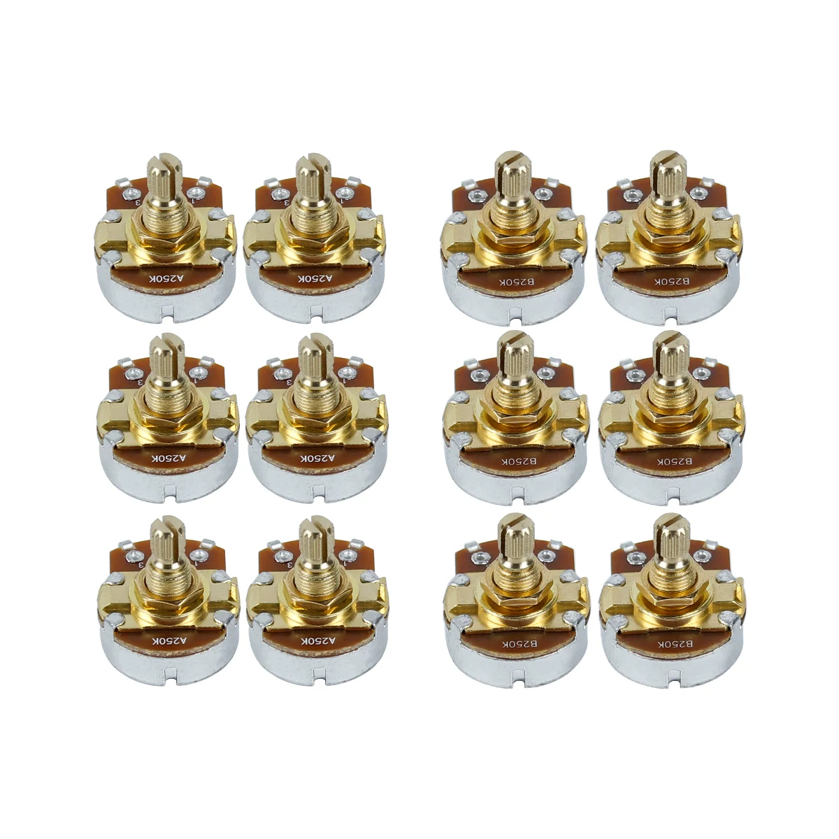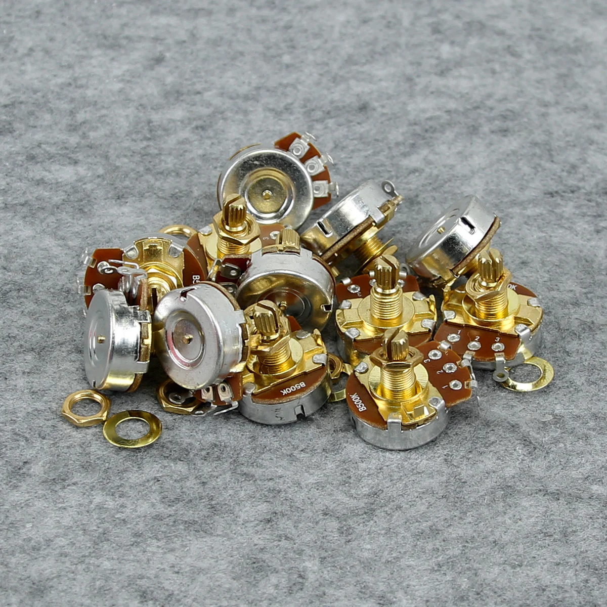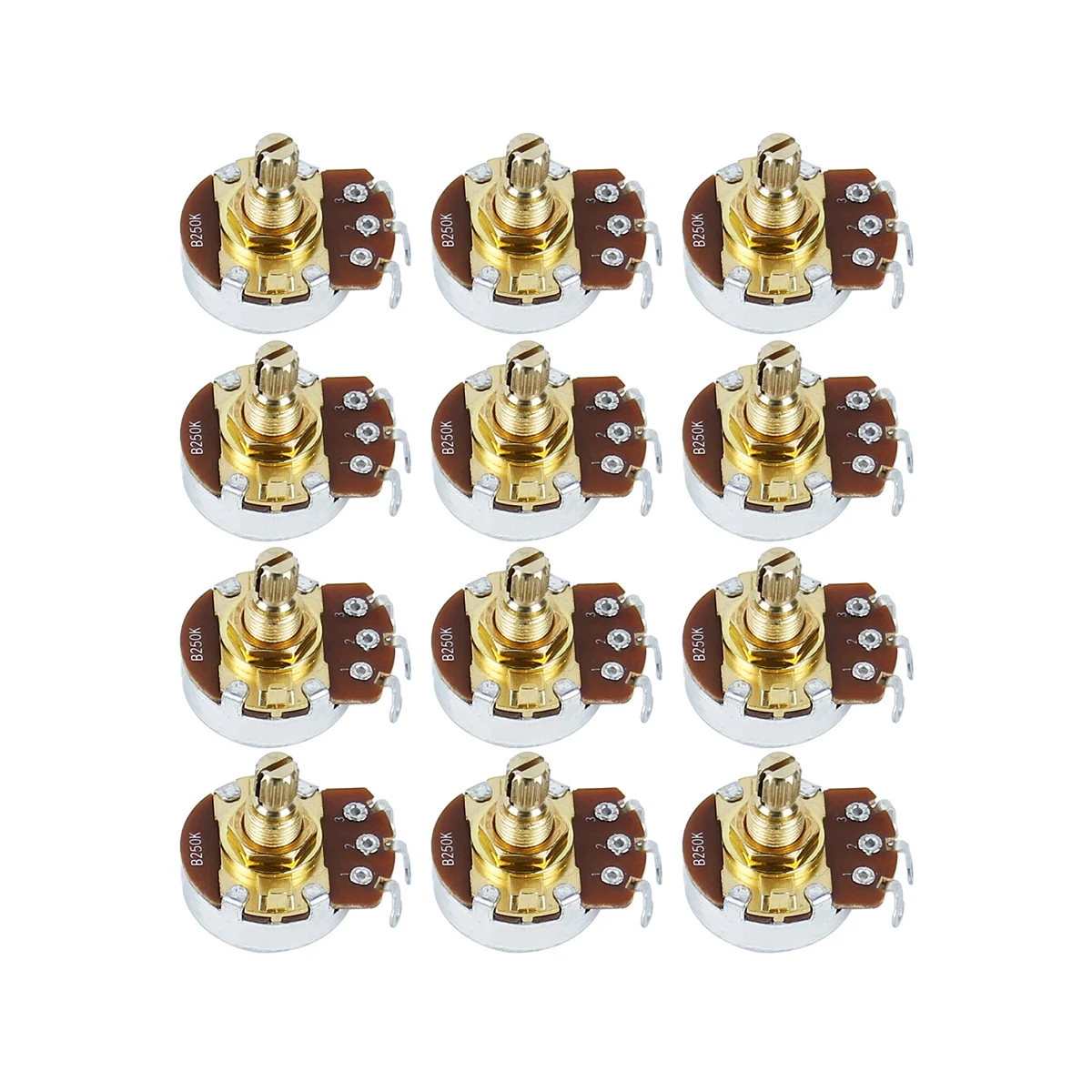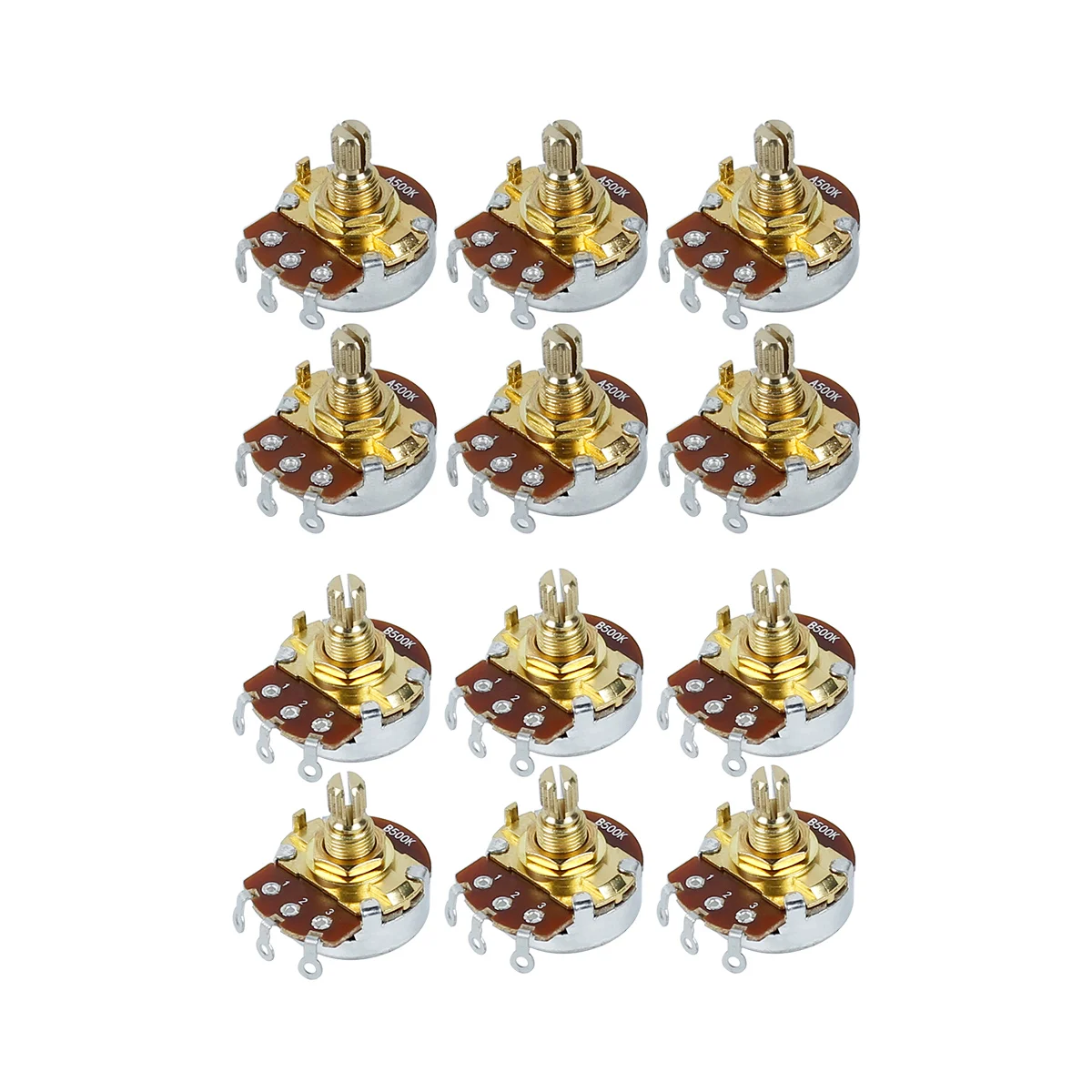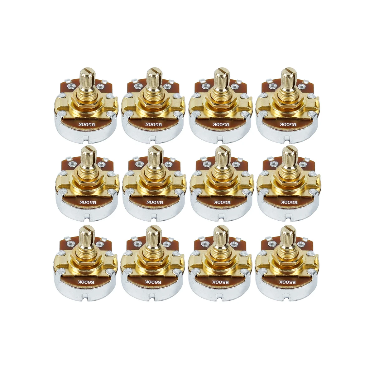 - Includes 12 sturdy, bronze-colored potentiometers with 15mm short shafts, ideal for precise control in electric guitar and bass setups.