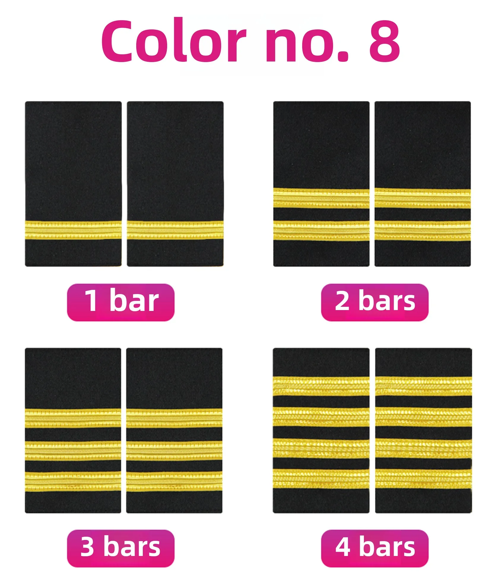 The Golden Metallic Braid Shoulder Epaulettes are an exquisite accessory, ideally suited for aviation, marine security, and factory staff rank marking. Crafted from durable polyester, these epaulettes showcase a variety of striking gold stripe patterns against a dark background. With options like single thick, multiple parallel braids, and intricately designed arrangements, they embody a polished and professional appearance that catches the eye. Available in various colors including NO8 to NO16 styles, these epaulettes cater to both men and women, making them a versatile addition to any formal uniform.