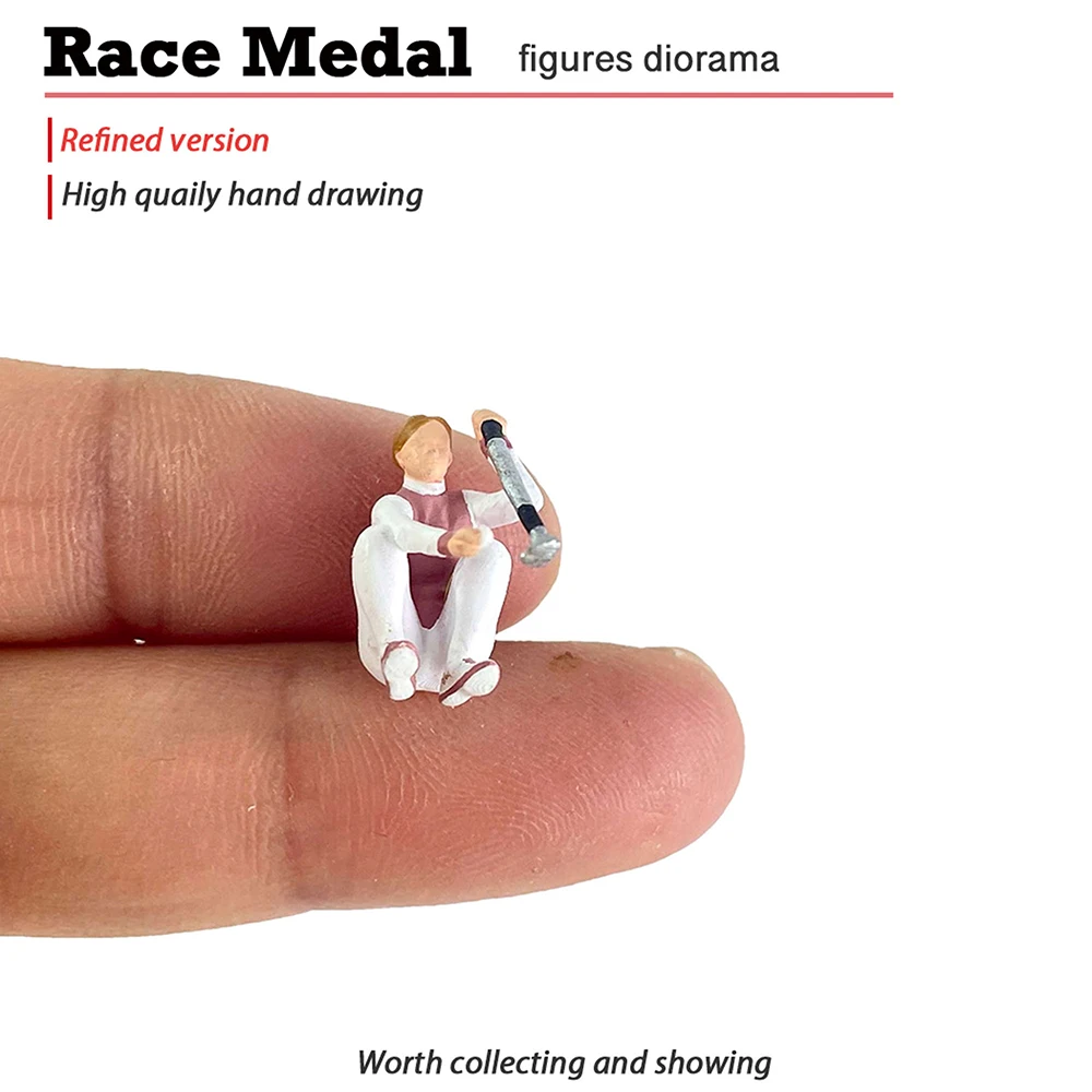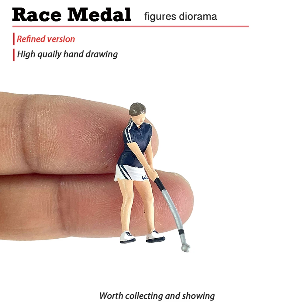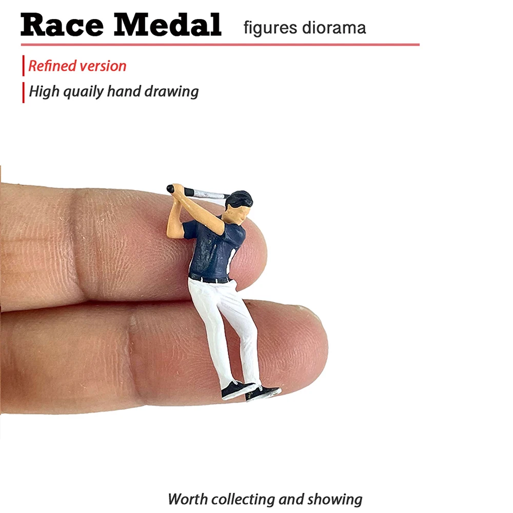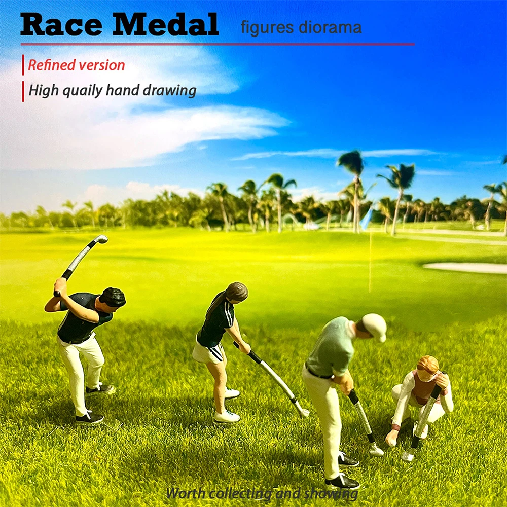 Immerse yourself in the detailed realism of this RM 1:64 scale miniature figurine set, featuring four lifelike golf scene characters. Each figure, approximately 1.1″ (2.8 cm) tall and weighing 25 grams, is crafted from high-quality PVC resin with intricate painting and naturalistic expressions. Designed for adult collectors, these figures depict golfers in various poses: a striking mid-swing, preparing for a shot, poised to hit, and focusing on a shot, dressed in classic golf attire in shades of blue, white, and maroon. Suitable for year-round display, this finished set enhances any collection with authentic craftsmanship and sophisticated aesthetic appeal.