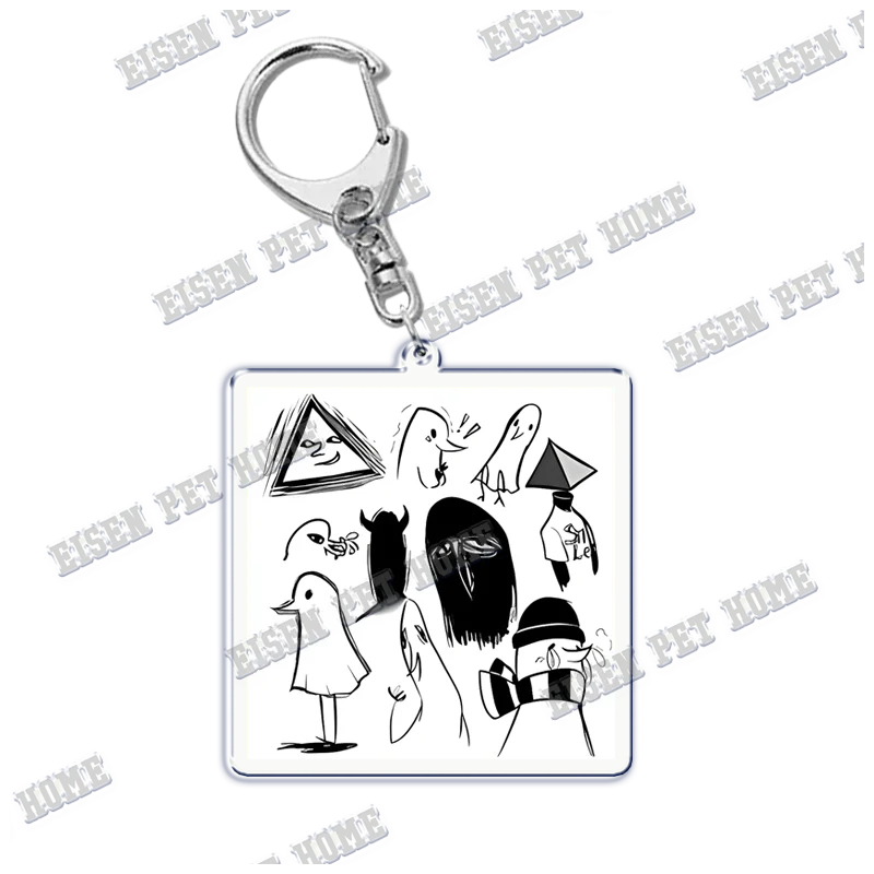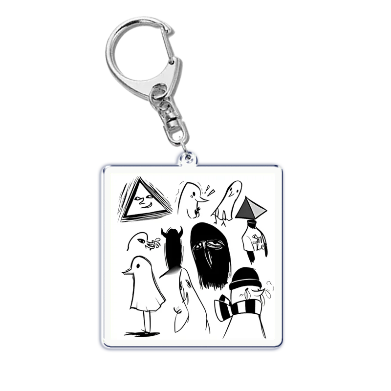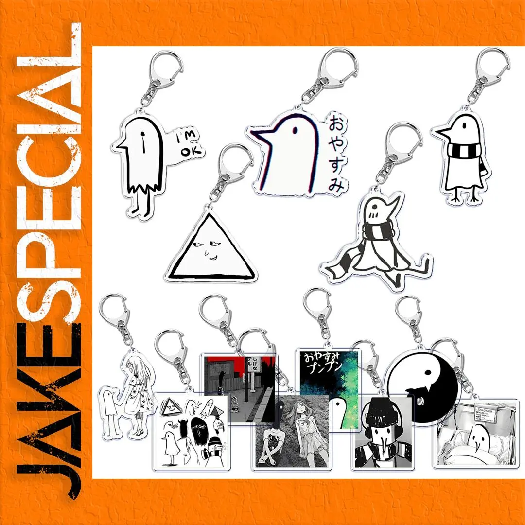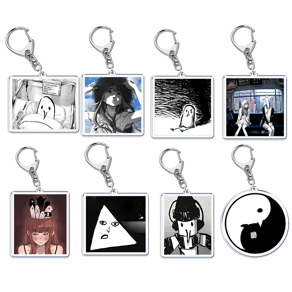 This collection of Goodnight Punpun acrylic keychains is perfect for showcasing your love for this whimsical series. Each keychain, featuring unique bird-like characters and minimalist human figures in striking black and white designs, is attached to a durable silver metal lobster clasp for easy accessorizing. Its playful geometric shapes, including triangles and stylized faces, add visual interest. With charming Japanese text elements and a predominantly monochromatic color palette, these keychains stand out beautifully against any bag or accessory. Ideal for gifts or personal use, they encapsulate artistic flair, making every moment feel special.