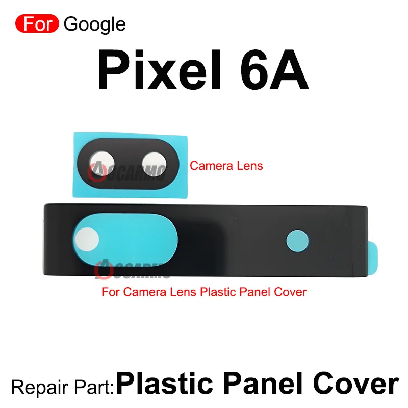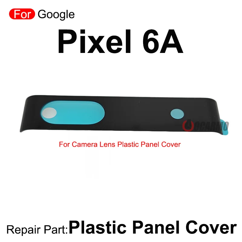 Imagine restoring your Google Pixel 6A to its original perfect condition with this high-quality rear back camera lens and cover lens plastic panel replacement. Designed specifically for the Pixel 6A, this lightweight and durable set features a sleek black plastic cover with a smoothly rounded elongated oval shape, ensuring a seamless fit. The circular cutout reveals a subtle light blue element, adding a refined touch to your device’s aesthetic. The separate camera lens component boasts a striking light blue background with precise black cutouts and white outlines around the lens and sensors, giving you a professional look. Keep your device protected while maintaining its stylish appearance with this reliable replacement part, perfect for restoring or upgrading your phone's camera functionality and aesthetic appeal.