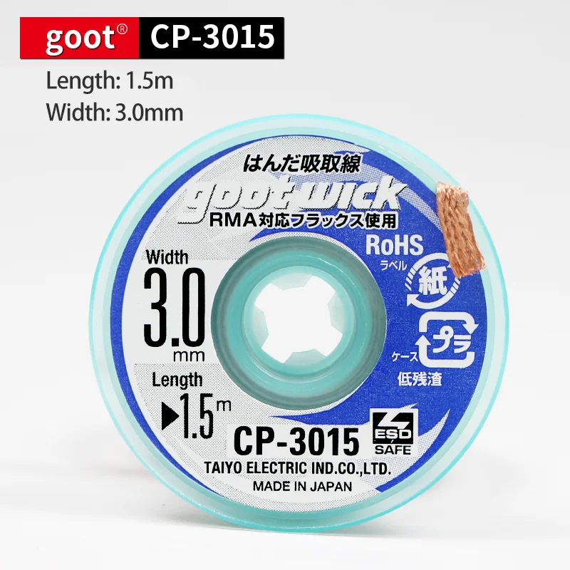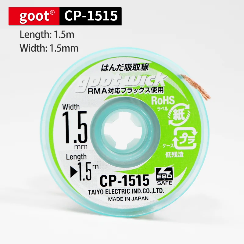 - Made in Japan from high-quality copper or flat braid material, offering excellent thermal conductivity for fast solder absorption and precise desoldering performance.