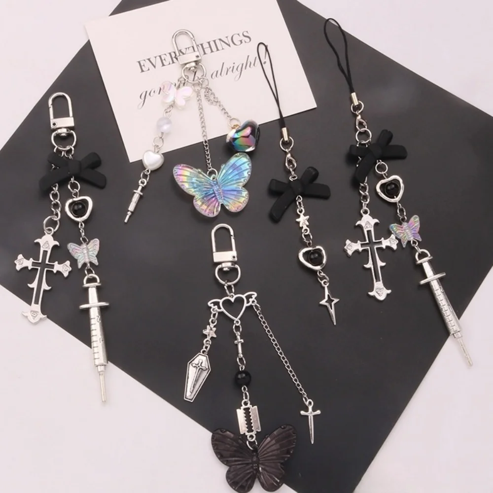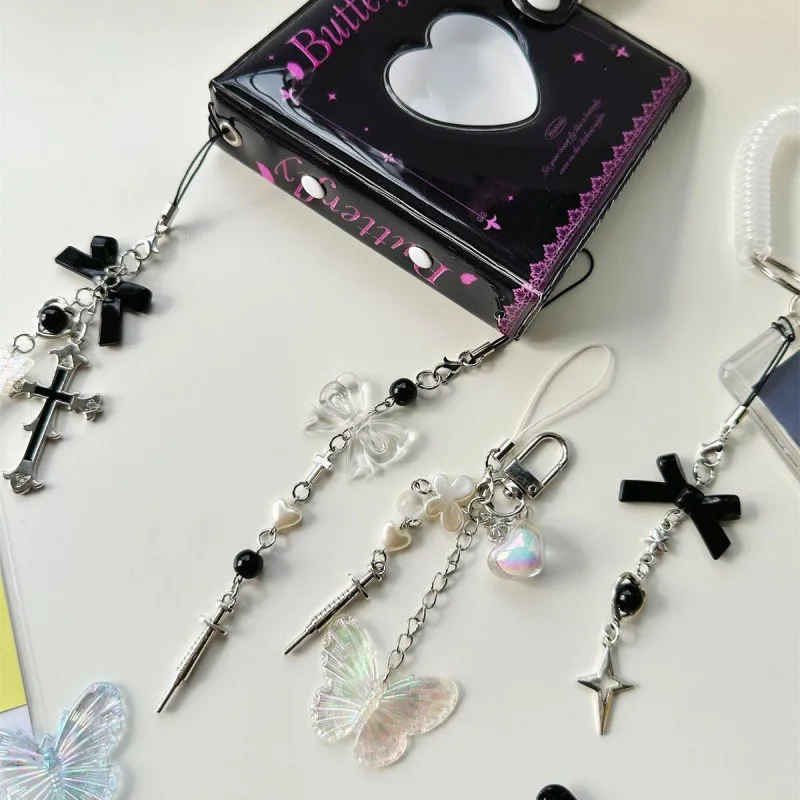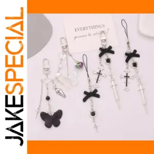 Enhance your accessories with this stylish beaded fashion key chain, approximately 13 cm long and weighing only 15 grams. Made from durable zinc alloy, it features a trendy cross shape with intricate beaded embellishments, available in a versatile range of colors including gold, silver, white, black, gray, purple, green, violet-pink, yellow, pink, blue, brown, red, ivory, and watermelon red. The lightweight design with a D-shaped buckle makes it easy to attach to most bags, phones, or keys, serving as a charming decorative piece or a thoughtful gift for fashion enthusiasts. Perfect for adding a touch of gothic elegance to your personal style.