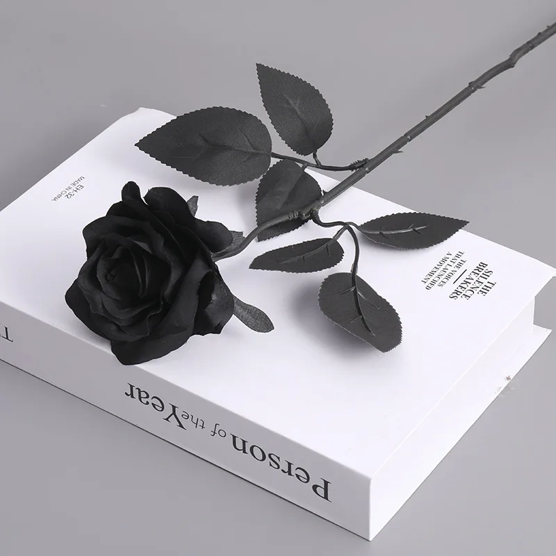 Bring a touch of darkness and elegance into your space with this hauntingly beautiful artificial rose. Its realistic craftsmanship and gothic style will elevate your Halloween, horror, or gothic-themed decorations effortlessly. Whether as a gift or home accent, this piece creates an immersive ambiance that captivates and intrigues. Its durable construction ensures lasting beauty, adding a mysterious charm to any indoor environment. Don't miss out on perfecting your spooky or elegant decor—add this gothic black rose to your collection and transform your space with a touch of dark sophistication today!