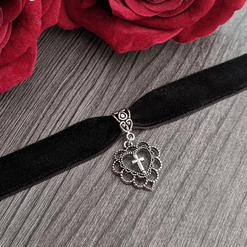 This stunning Gothic Cross Heart Charm Choker Necklace is an exceptional accessory that perfectly complements your unique style. Its daring design showcases a captivating charm, making it the ideal piece to express your inner witch and embrace a bold fashion statement. Crafted for those who dare to be different, this necklace not only enhances your outfit but also adds a touch of mystique. Visualize yourself wearing this choker at your next gathering, effortlessly drawing admiration and inspiring intrigue. Allow yourself to shimmer with confidence as you step out, embodying an enchanting aesthetic.
