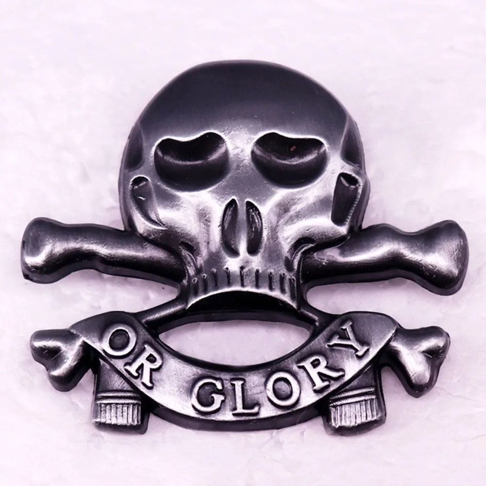 This Gothic Death or Honor Metal Pin brooch is the ultimate statement piece for any edgy fashion lover. With its striking silver-tone finish, this brooch features an intricately detailed skull complete with hollow eye sockets and a pronounced nasal cavity. Below the skull, stylishly designed crossbones stretch outward, enhancing the overall Gothic aesthetic. An eye-catching banner at the top reads “OR GLORY,” infusing the brooch with rebellious spirit. Measuring approximately 4.5 cm in height and 4 cm in width, this accessory is perfect for personalizing jackets, hats, backpacks, or any DIY clothing project, making it a versatile addition to your accessory collection.