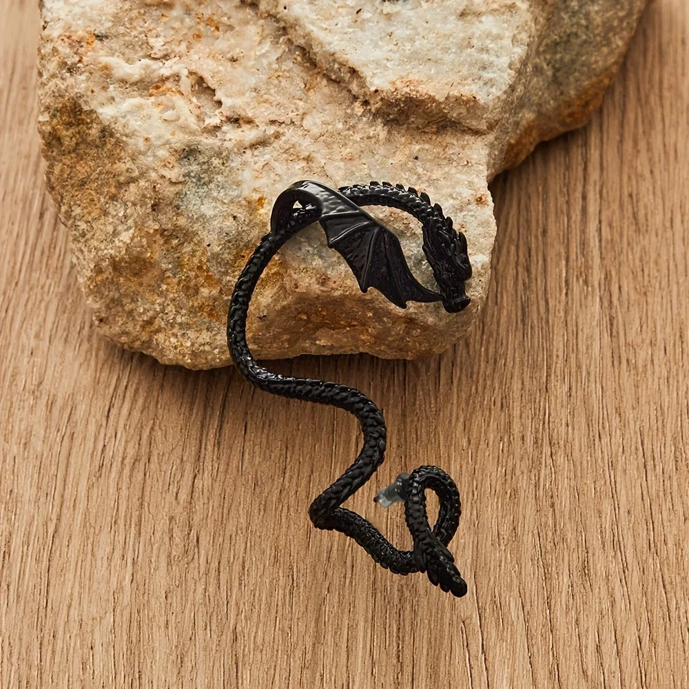 Step into a world of mythical allure with this captivating set of gothic dragon clip earrings. Designed to evoke a bold, vintage aesthetic, these earrings blend intricate detail with a commanding presence. Each piece vividly portrays a fierce dragon in a striking gold color, featuring textured scales, sharp horns, and expressive facial features, all crafted from high-quality zinc alloy. The earrings are available in three variations—black right-ear, gold left-ear, and silver left-ear—allowing you to coordinate your style effortlessly. With a diameter range of 10mm to 20mm, they are perfectly sized to make an eye-catching statement. These earrings are ideal for adding a gothic, fantasy-inspired touch to any fashionable outfit, making you feel both powerful and unique.