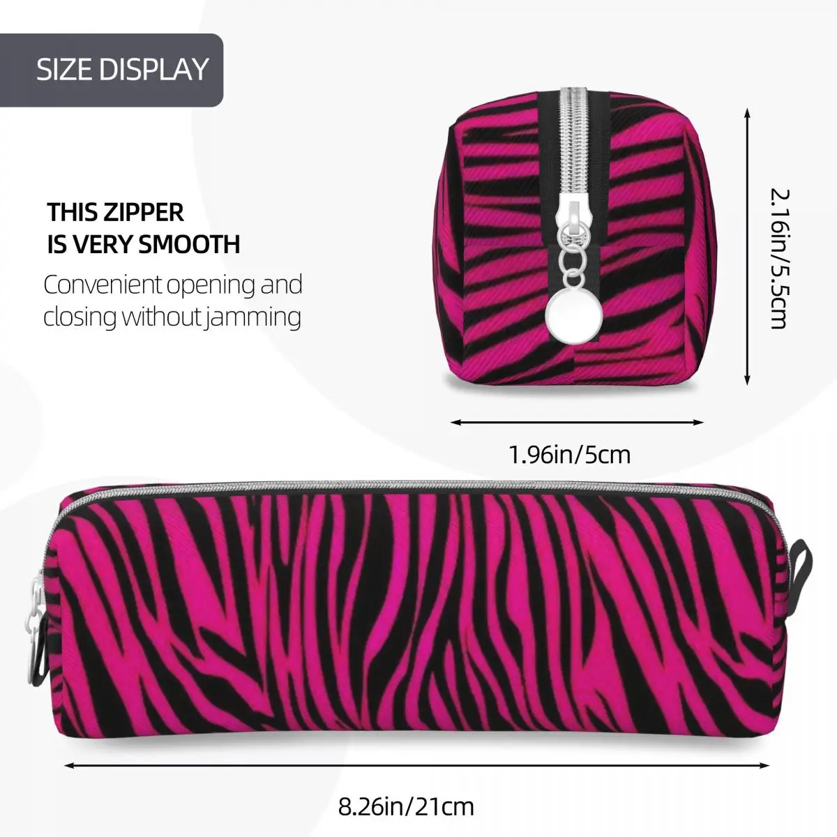 This Gothic Pink Zebra Stripes Pencil Case combines vivid aesthetic appeal with functional design, making it a perfect accessory for school or office. The striking blend of bright pink and bold black zebra stripes creates a stylish look that stands out. Its spacious interior easily accommodates a variety of stationery items, ensuring that all your pens, pencils, and school supplies are organized and readily accessible. The sturdy silver zipper closure not only secures your belongings but also adds a sleek metallic accent. Crafted with soft fabric, this pencil case adds both flair and practicality to your everyday carry, making you feel confident as you showcase this trendy accessory.