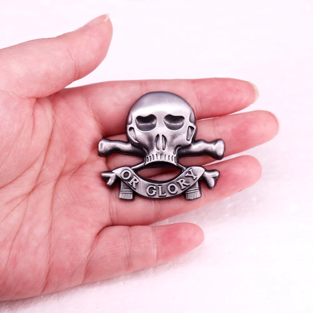Elevate your style with this 4.5 cm by 4 cm alloy metal pin featuring a striking silver finish. Designed for unisex wear, it combines retro, punk, gothic, and hip-hop aesthetics with a bold skull and crossbones motif inscribed with “OUR GLORY.” Its polished, glossy surface reflects light, making it a versatile accessory for jackets, backpacks, hats, or DIY clothing projects. Crafted for durability, it is inspected before delivery, allowing slight size variations of 1-3 mm. Perfect for expressing your rebellious spirit with a sleek, edgy look, this pin is a must-have addition to any gothic or punk-inspired collection.