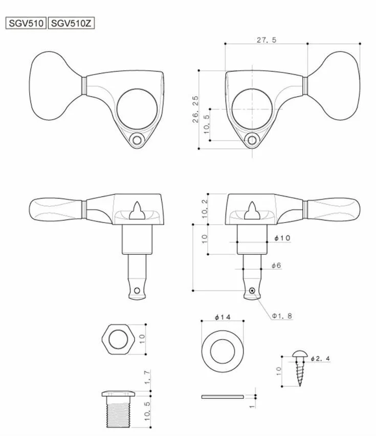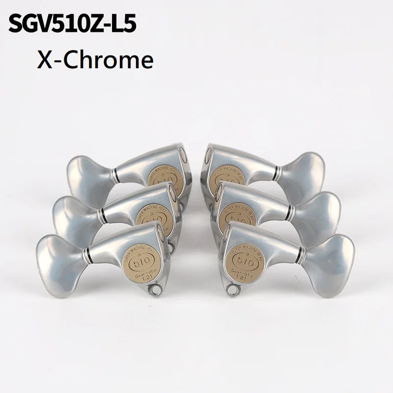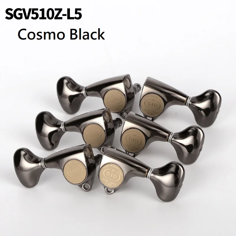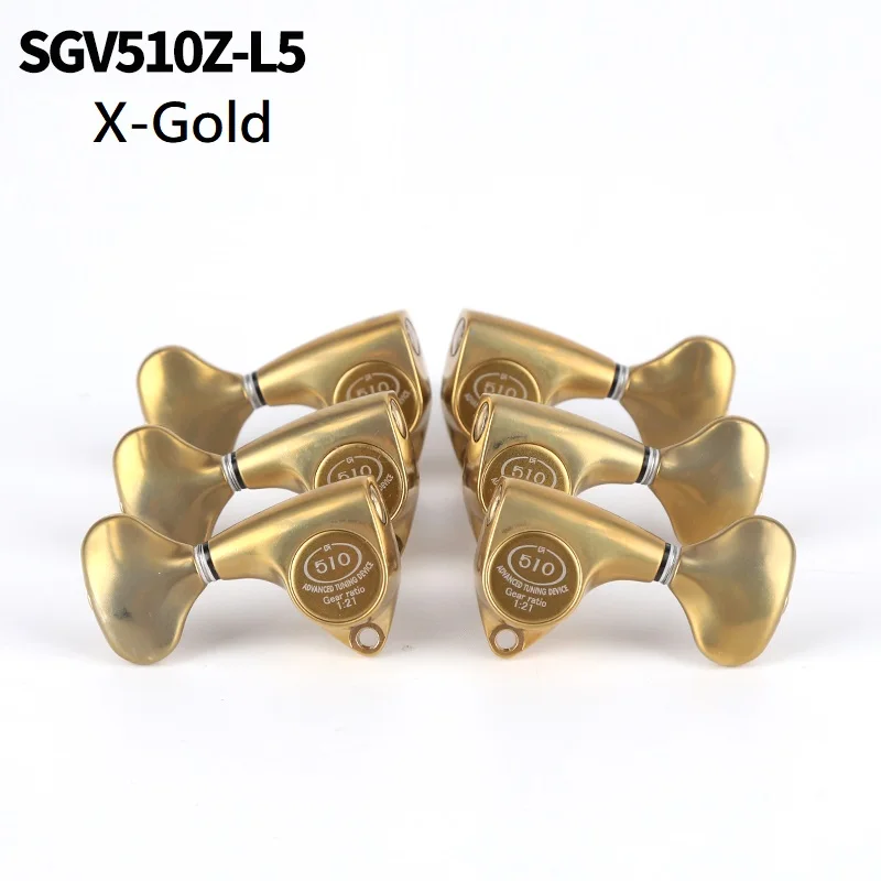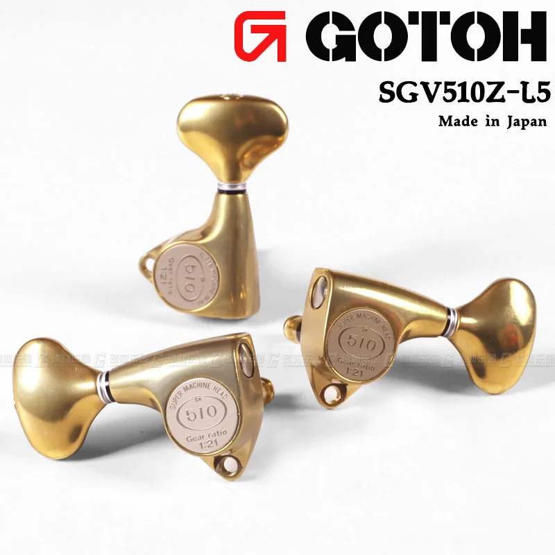 Experience precise tuning with this set of high-quality GOTOH SGV510Z L3+R3 guitar tuners, featuring a 1:21 gear ratio, 22.2 mm shaft length, and 10 mm bore diameter. Crafted from durable metal with a polished gold finish, these closed-constructed tuning pegs offer a sleek, luxurious look tailored for electric guitars in a 3-left/3-right configuration. Includes attachment screws, washers, and hex-head banjo bolts for secure installation. Made in Japan, they deliver excellent stability and durability, elevating both the function and aesthetic of your instrument. Please note, professional installation is recommended to ensure proper fit and optimal performance.