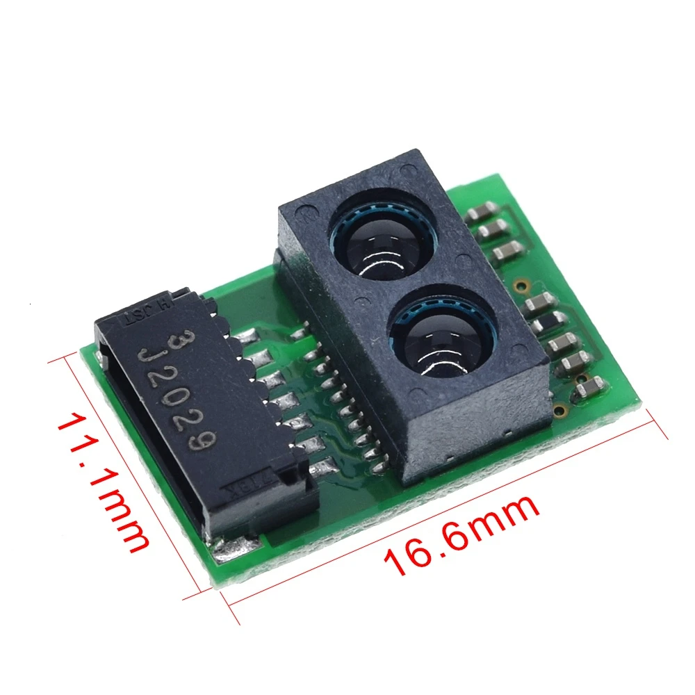 Experience precise distance measurement with this compact IR distance sensor module, measuring from 4 to 50 cm. It features an infrared LED, CMOS image sensor, and a built-in signal processing circuit, operating on 2.7V to 5V power supplies. Its sleek dimensions of 16.7 × 11 × 5.2 mm make it ideal for integration into robotics, non-contact switches, energy-saving devices, and amusement equipment. The sensor provides both digital (I2C) and analog outputs, utilizing triangulation for high accuracy that remains unaffected by surface reflectivity, ambient temperature, or operation time. Perfect for building intelligent, responsive electronic projects that require reliable proximity detection.