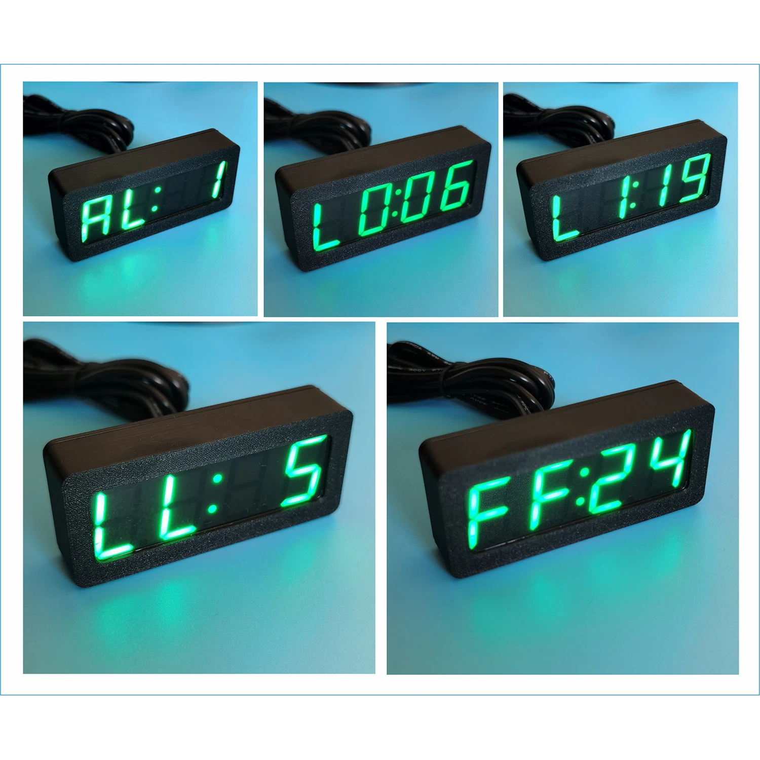 Then long press the button to enter the next setting FF:, which is the switching option between 12 hour and 24-hour clock. FF: 12 is the 12 hour clock, FF: 24 is the 24-hour clock. After adjusting this parameter, finally long press the button to save and exit.