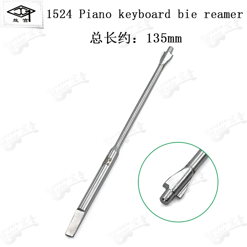 Experience precision in piano maintenance with the professional-grade GQ1524 1524 key reamer, crafted from durable brass and cupronickel materials. This sleek, metallic tool measures approximately 135mm in length and features a tapered, elongated body with a flat, angled reaming head designed for fine adjustments. Although it does not include a handle, it can be paired with a compatible handle for optimal use, effectively reducing key resistance. Its polished finish and streamlined design reflect expert craftsmanship, making it an essential instrument for technicians seeking high accuracy and durability in piano key reaming tasks.
