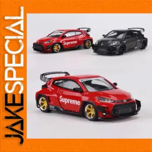 Experience the thrill of racing with this expertly crafted diecast model featuring the iconic GR Yaris Pandem. With its stunning 1:64 scale design, this collectible captures every detail from its vibrant paint jobs to its functional aerodynamic elements. The vibrant red variant boasts a striking “Supreme” logo, gold alloy wheels, and intricately designed body panels, while the sleek black model emphasizes a sporty allure with its sculpted grille and rear wing. Perfectly sized at 7 cm in length, these models showcase exceptional craftsmanship, making them a must-have for any automotive enthusiast or collector.