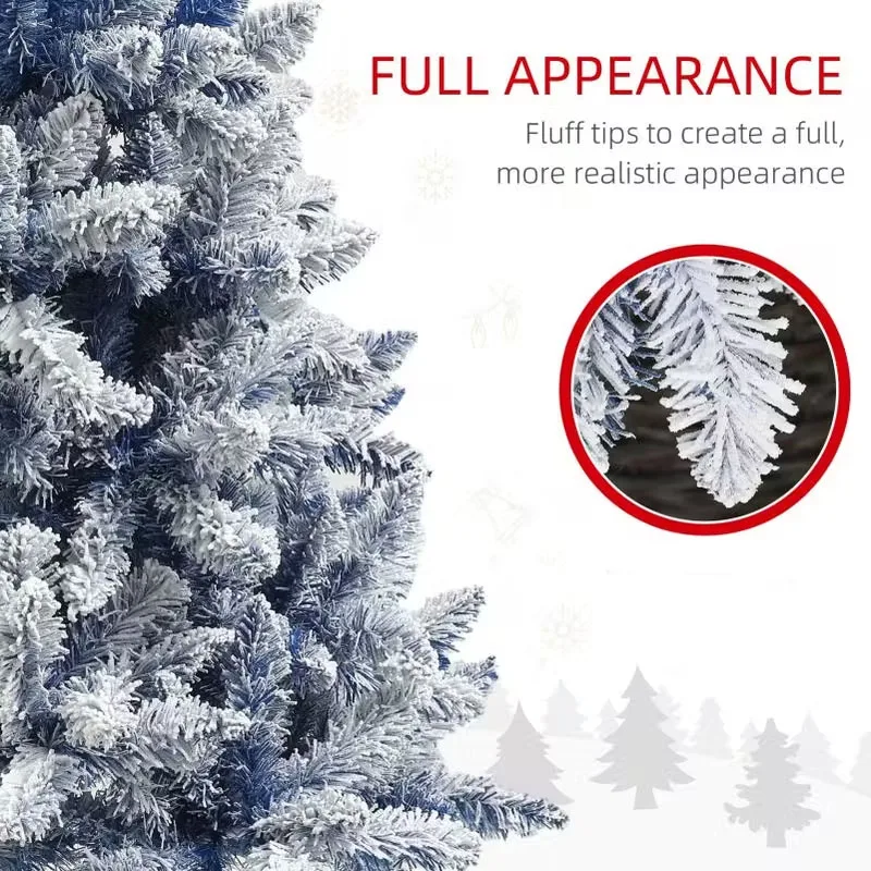 - The pointed conical design is enhanced with snow-flocked branches, creating a realistic winter scene that invites warmth and cheer into your space.