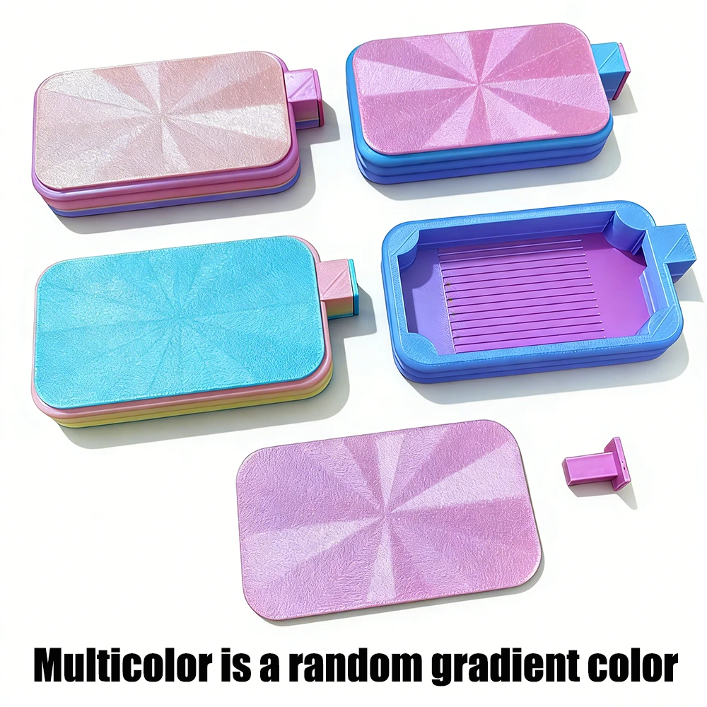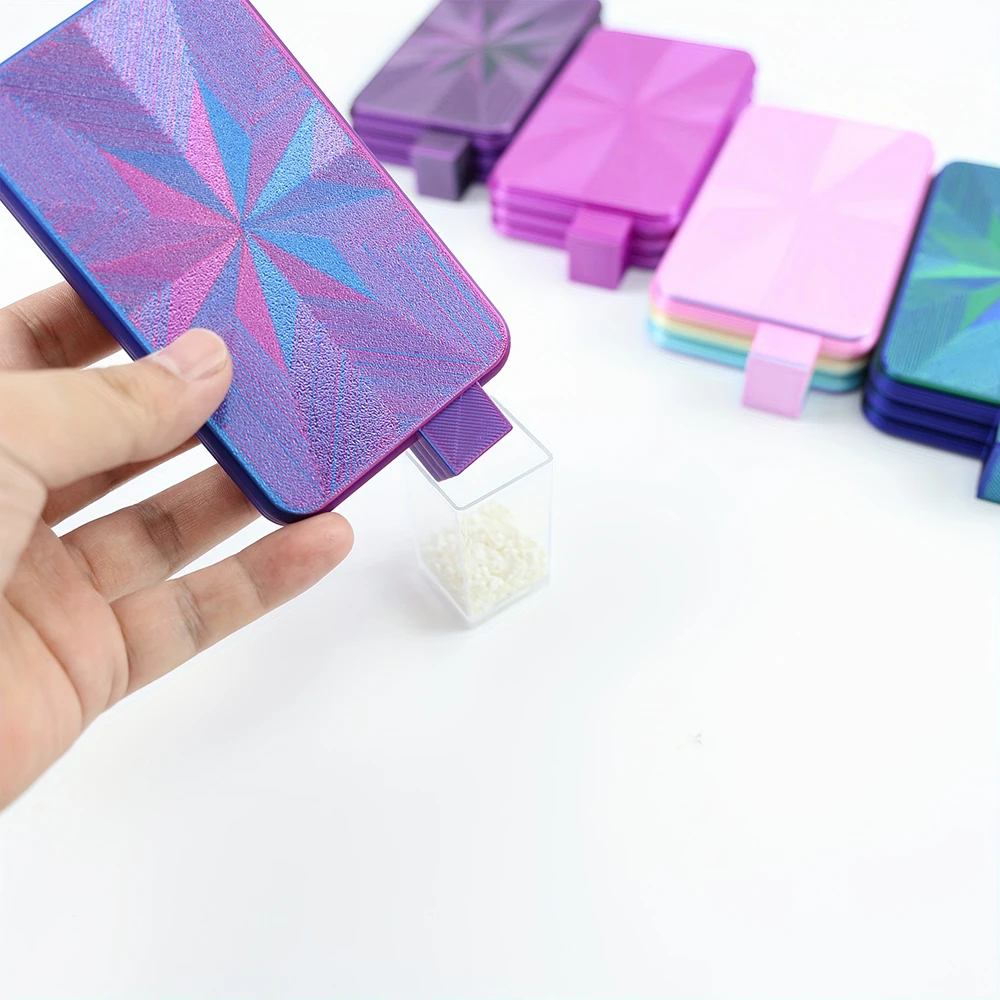 Imagine having all your diamond painting accessories perfectly organized and easily accessible with this stylish storage solution. Crafted from durable plastic, this tray features a sleek rectangular design with rounded edges, blending modern aesthetics with practical functionality. The vibrant gradient color schemes—available in black purple, blue green, multicolor, pink, and purple blue—add a touch of elegance to your craft space. The matching lids fit snugly, ensuring your beads and rhinestones stay securely put while you work. Its compact size makes it easy to stack or carry around, giving you flexibility during your creative process. Whether you're organizing beads, rhinestones, or small tools, this box makes your DIY crafts more enjoyable and efficient.