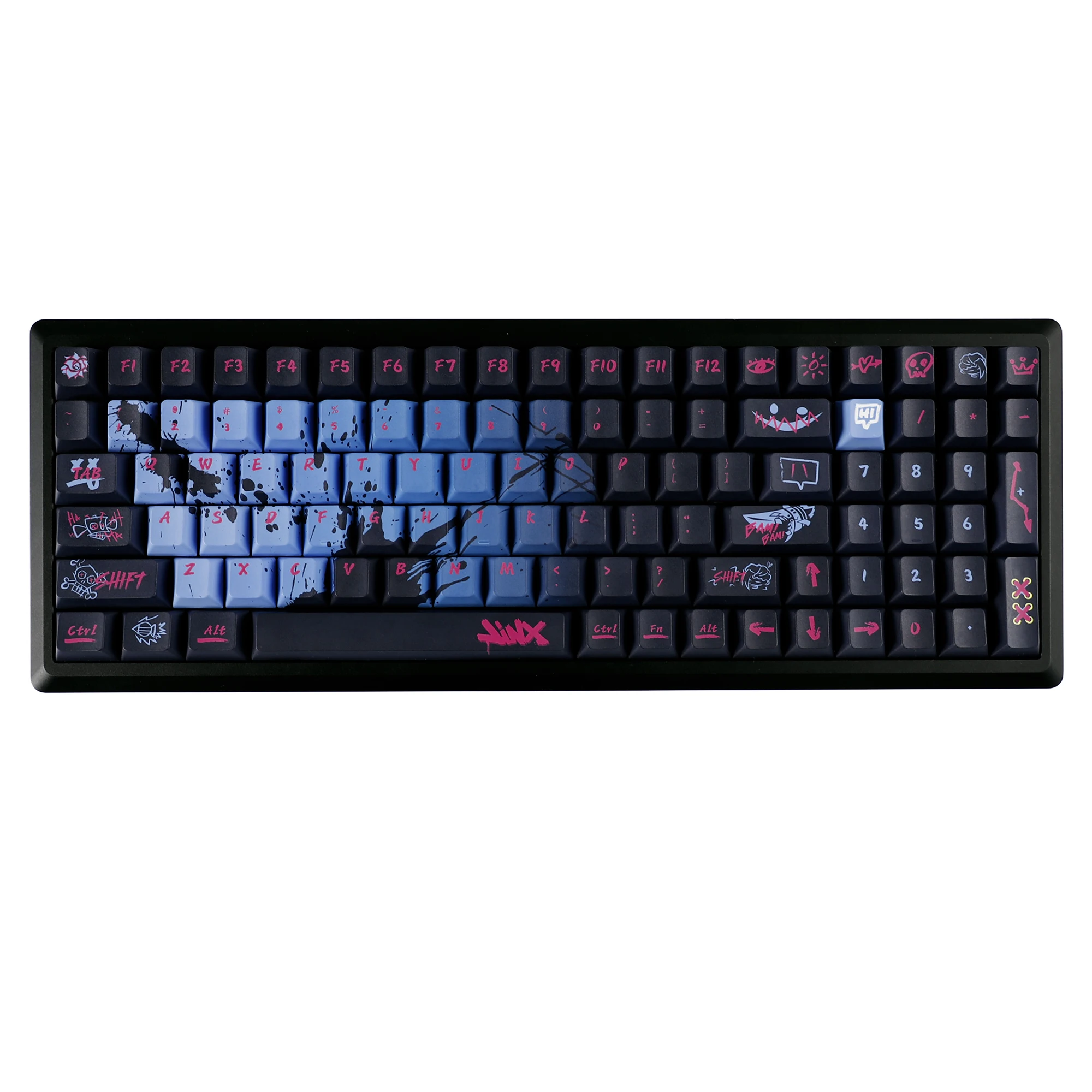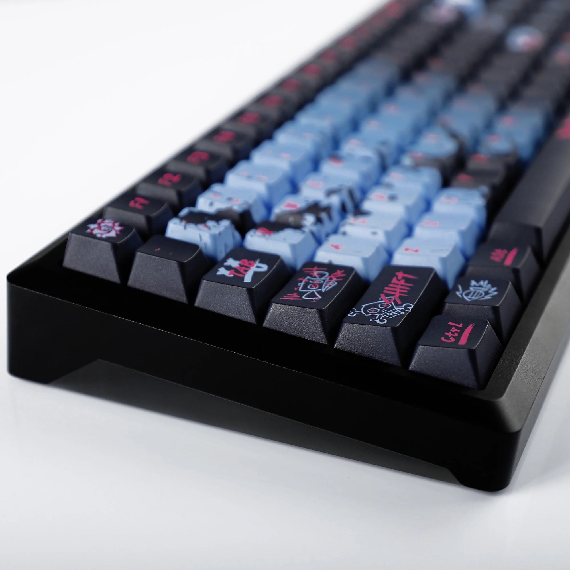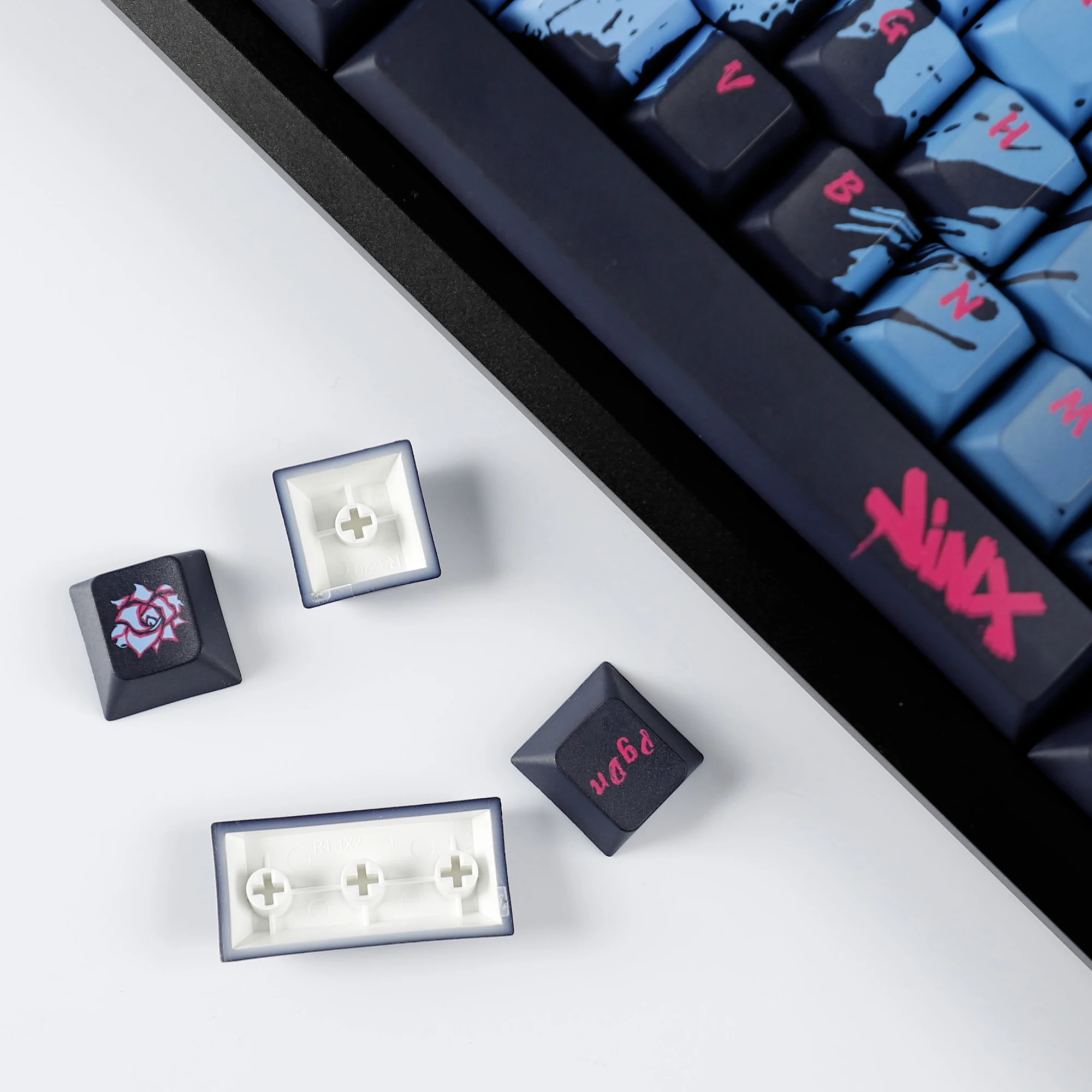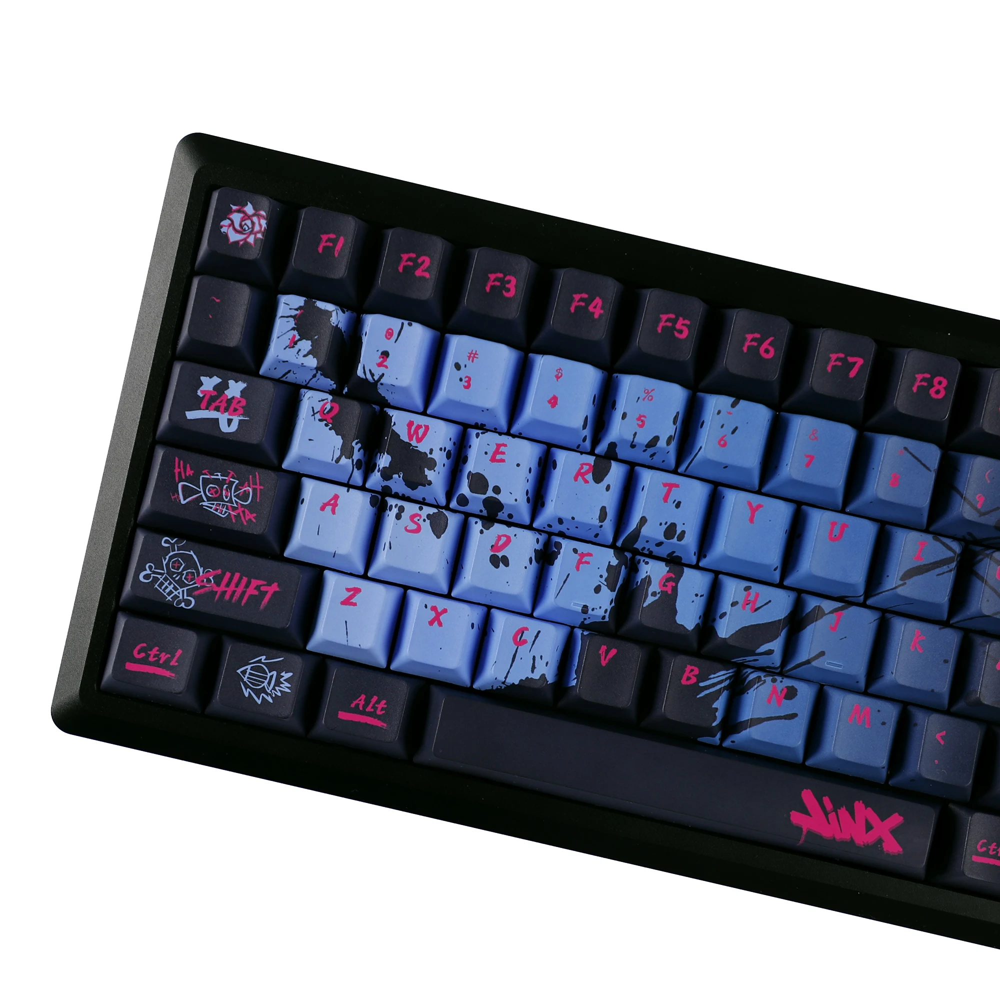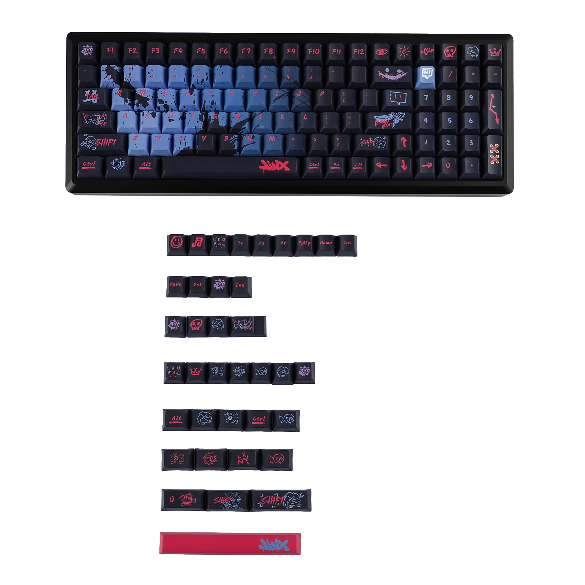 Immerse yourself in the bold, rebellious style of this this graffiti-inspired keycap set, designed to elevate your mechanical keyboard. Crafted from durable 1.7mm thick PBT, these keycaps offer a textured feel and resist oil build-up, ensuring longevity and a premium tactile experience. The eye-catching black and vibrant blue colors feature graffiti splatters, tags, and stylized illustrations in contrasting pink and black, creating a street-art aesthetic that stands out. Compatible with most standard MX switch keyboards, including layouts from 61 to 108 keys with a 6.25u spacebar, this set is perfect for customizing your gaming or work setup to reflect your unique personality. Upgrade with these artistic keycaps and transform your typing experience.