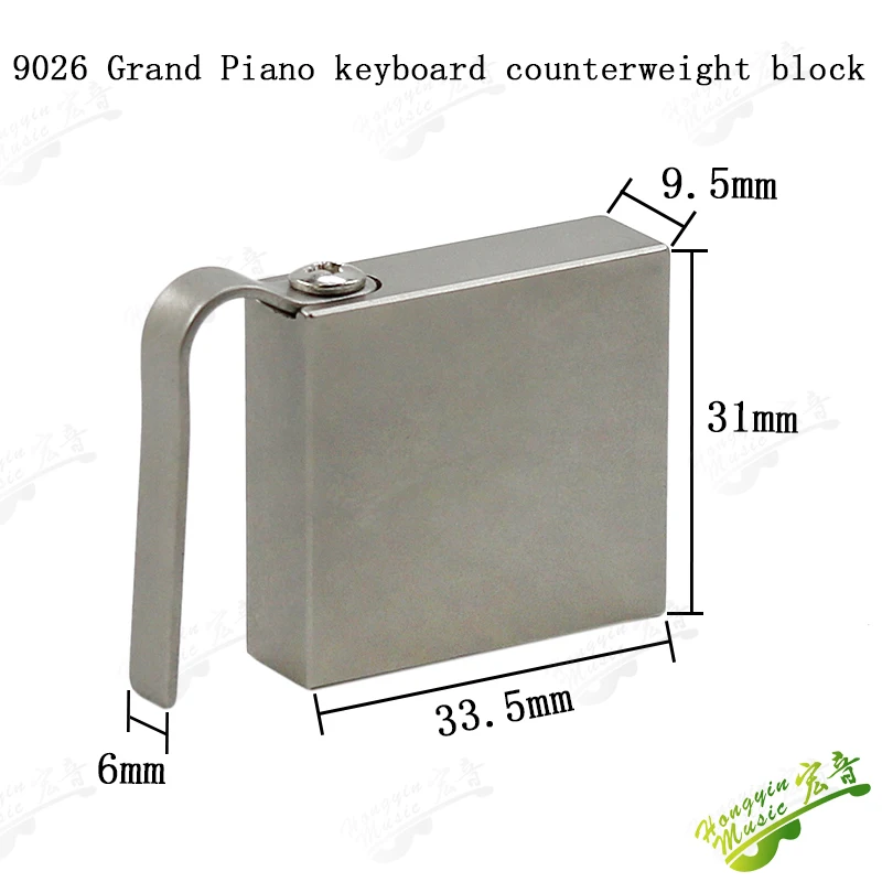 The Grand Piano Keyboard Counterweight Block model 9026 features a sleek, rectangular alloy metal design finished in a polished metallic gray (GQ9026). Crafted from durable brass and cupronickel, it offers excellent hardness, strength, and longevity, making it ideal for fine-tuning and balancing grand piano keyboards. Its minimalist design includes a curved metal arm or lever for precise adjustment, emphasizing craftsmanship and durability. This high-quality counterweight block seamlessly integrates into grand pianos, ensuring balanced, responsive key action. Whether enhancing the stability of your instrument or maintaining optimal performance, this counterweight is an essential accessory for piano technicians committed to precision and durability.