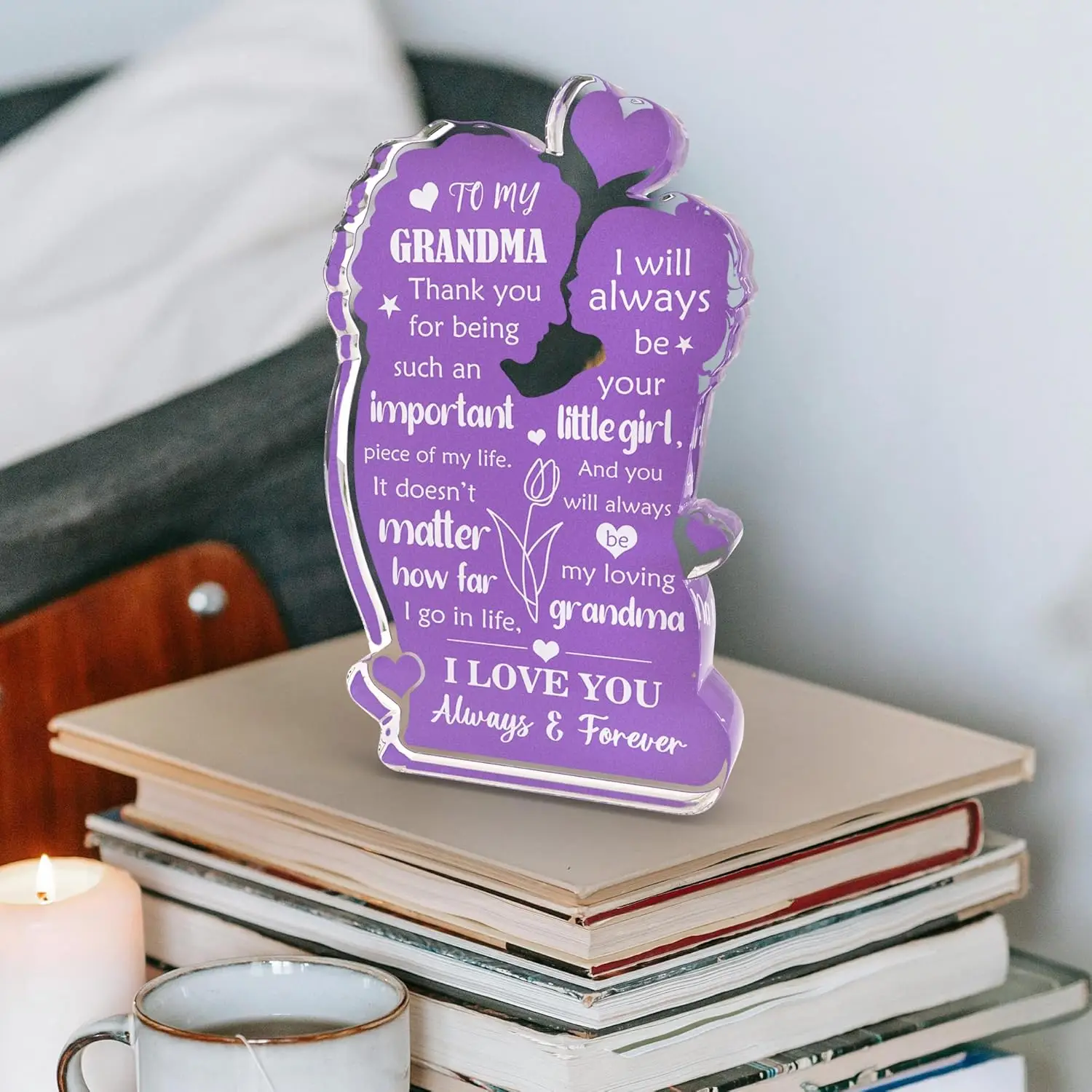 Celebrate your love with this charming purple teddy bear-shaped gift item, crafted from lightweight, glossy plastic. Featuring rounded contours, a heart-shaped detail on the head, and heartfelt white cursive and bold message decorations, it exudes warmth and affection. Perfect for gifting occasions like Mother’s Day and Christmas, this single-piece decorative keepsake is designed to express gratitude and love for grandmothers or great-grandmothers. Its smooth, vibrant finish, coupled with gentle white accents of hearts and a flower, makes it an ideal and meaningful present that will bring a smile and lasting sentimental value to your special someone.
