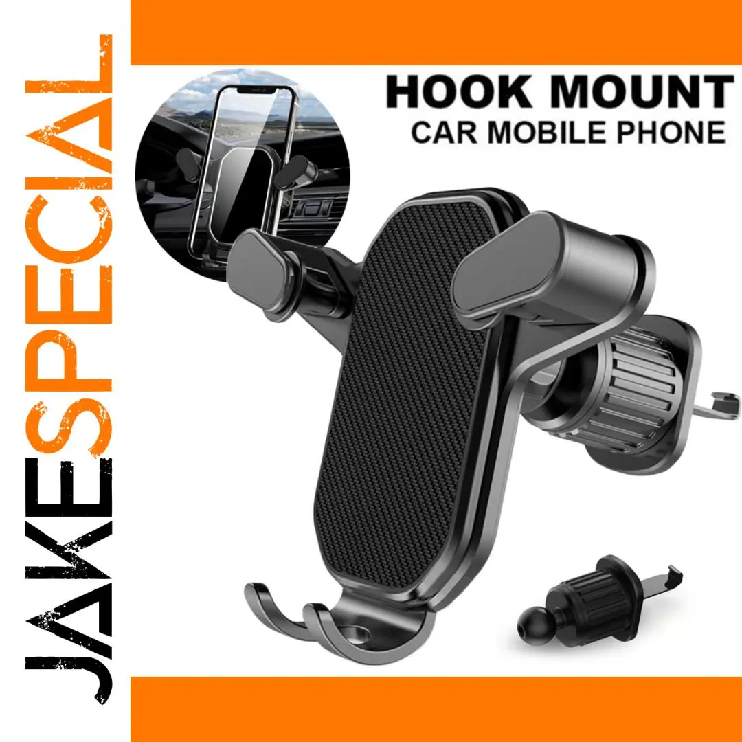 Experience the perfect blend of modern design and reliable function with this gravity car phone holder. Crafted in sleek black or dark gray, it features a textured, matte finish that enhances its refined look. Designed to seamlessly fit onto your vehicle's air vent, the hook-shaped clip ensures a secure, stable mount without damaging your dashboard. The side arms are padded with soft rubberized ends that gently grip your smartphone, providing protection and stability. The elongated, curved backplate with its textured central surface not only offers additional grip but also adds an aesthetically pleasing element. Whether you're navigating or making hands-free calls, this holder keeps your phone within easy reach, combining style, durability, and ease of use for your everyday driving needs.