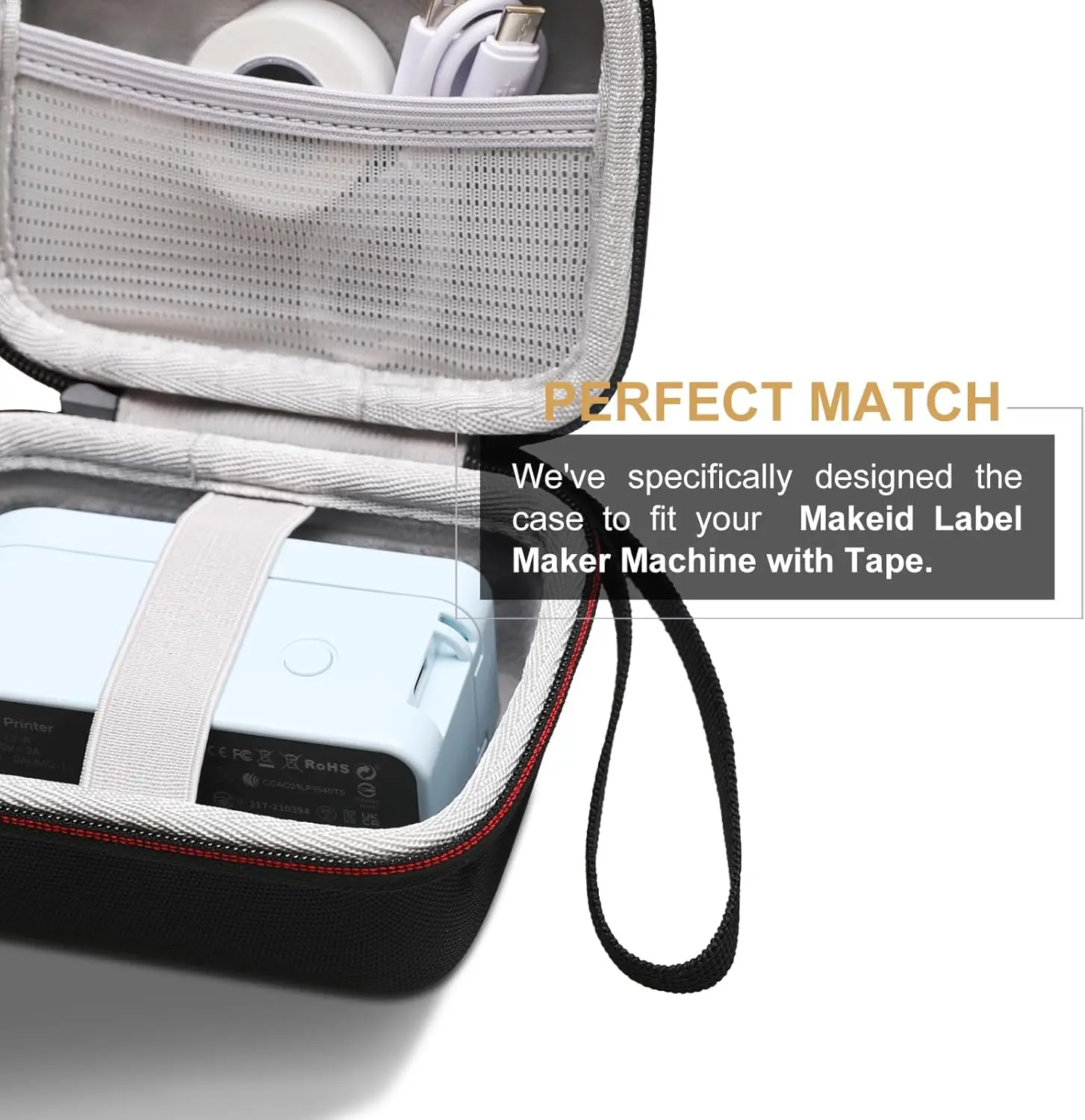 Keep your Makeid L1-A Label Maker Machine with Tape safe and organized with this durable gray hard case. Crafted from semi-waterproof, shockproof EVA material, it features a secure holding belt and a mesh pocket for accessories. The case measures 5.3″ in length, 4.2″ in width, and 2.6″ in height, offering a perfect fit for easy portability. Its smooth 360-degree zipper ensures quick access and secure closure, making it ideal for travel or storage. Lightweight and compact, this case combines rugged protection with a sleek, minimalist design, empowering you to keep your label maker and supplies protected wherever you go.