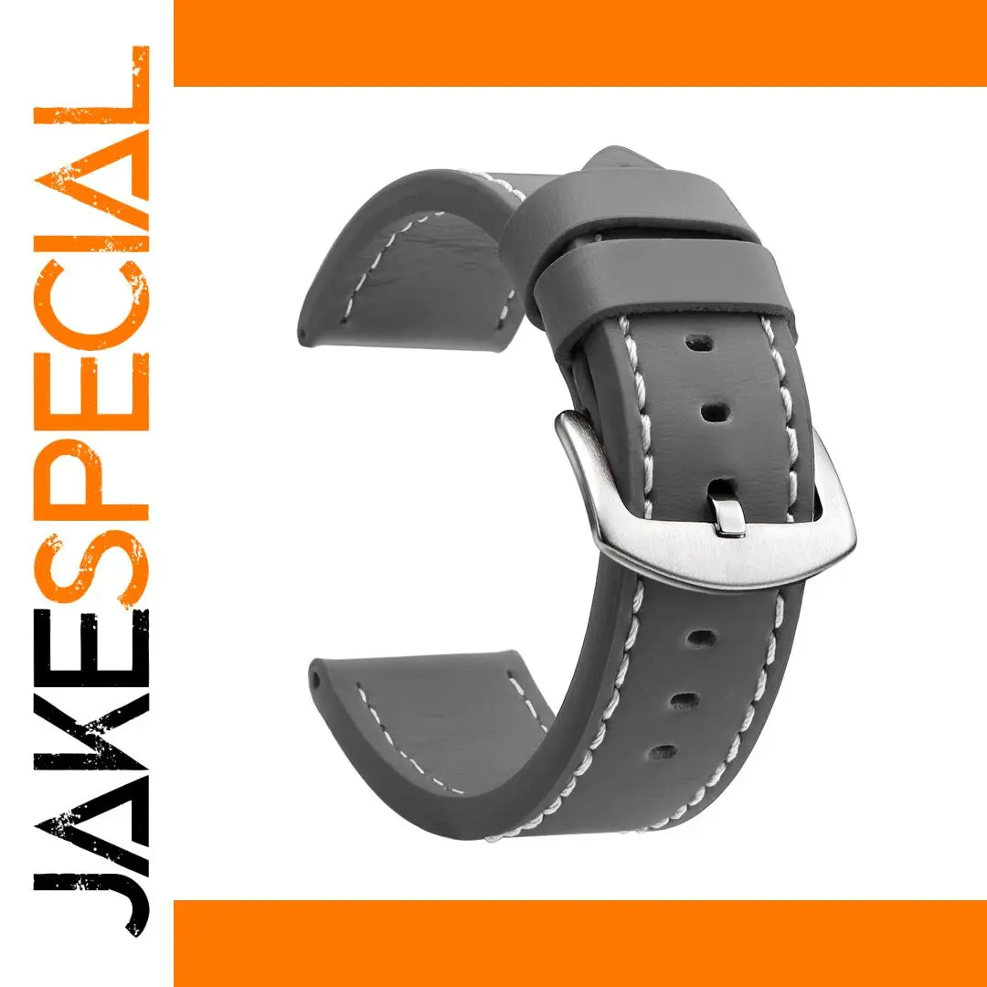 Elevate your style with the Premium Gray Leather Watch Strap featuring a sleek design complemented by contrasting white stitching and a durable silver stainless steel buckle. Crafted from smooth composite leather, this strap offers both comfort and sophistication, making it suitable for any occasion. With adjustable holes for a customizable fit across wrist sizes and available in four widths (18mm, 20mm, 22mm, and 24mm), this minimalistic strap seamlessly enhances your favorite watch. Imagine wearing this stylish accessory, perfectly accentuating your look and making a statement wherever you go. Upgrade your watch collection with this exquisite strap today!