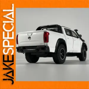 Experience the rugged charm of this highly detailed diecast model of the Great Wall POER pickup truck. Crafted at a 1:24 scale, it boasts a durable metal body with a realistic weight, embodying toughness and craftsmanship. Its sleek white finish is accented with bold black details around the wheel arches, side mirrors, door handles, rear bumper, and a sturdy top rail that adds to its off-road allure. The rugged black tires with prominent treads are mounted on silver-trimmed wheels, creating a striking contrast and authentic appearance. The transparent front and side windows allow a glimpse into a minimalist, yet realistic interior, highlighting quality craftsmanship. Perfect for collectors and enthusiasts, it makes a striking display piece that captures the modern, sporty contours of the actual vehicle.