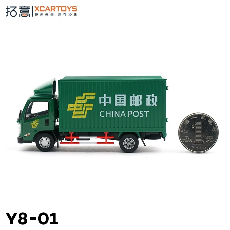 Experience the charm of this meticulously crafted 1:64 scale die-cast metal toy truck. Designed for collectors and enthusiasts, this vibrant green vehicle captures the essence of a functional cargo delivery truck. Its detailed exterior features a realistic front grille, headlights, and side mirrors that extend outward for a lifelike appearance. The transparent windshield and side windows reveal a simple yet authentic interior. The cargo container showcases vertical ridges, reminiscent of shipping containers, with bold white POST lettering and a colorful emblem. Beneath, black wheels with silver hubcaps sit on a striking red chassis, enhancing its industrial aesthetic. Whether displayed or played with, this high-quality model offers durability and realism for adult collectors and teenage enthusiasts alike.
