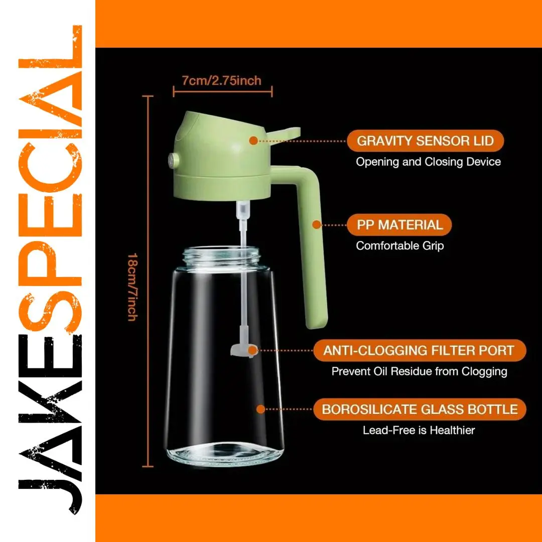 Imagine effortlessly spritzing your favorite cooking oils with this sleek, eco-friendly green oil spray bottle. Its transparent glass body lets you see your oil level at a glance, while the rounded, smooth gravity sensor lid adds a modern touch. Designed with ergonomic comfort in mind, the sturdy polypropylene handle fits comfortably in your hand, making food preparation more convenient. Whether you’re baking, frying, or preparing salads, this versatile device combines a spray dispenser and injector, holding up to 500ml of oil. Its compact size ensures easy storage, and the stylish design adds a contemporary flair to your kitchen countertop. Experience the ease of precise, mess-free oil application every time you cook and make your culinary routine more enjoyable.