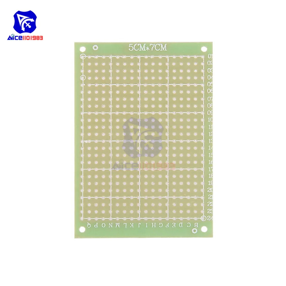 Experience effortless prototyping with this green, single-sided PCB measuring 5×7 centimeters. Its sleek rectangular design features rounded corners for a professional look, complemented by a smooth, matte green surface that offers excellent electrical insulation. Equipped with 18 rows and 24 columns of pre-coppered plated holes, each about 1 mm in diameter and spaced approximately 2.54 mm apart, it allows for precise component placement. The 1.5 mm thick FR4 glass fiber base makes it durable and reliable for repeated use. Perfect for transferring circuits from breadboards without rewiring, its design supports point-to-point soldering and versatile DIY applications. You’ll find this board an invaluable tool for custom electronics projects, offering a clean, organized workspace to bring your ideas to life.