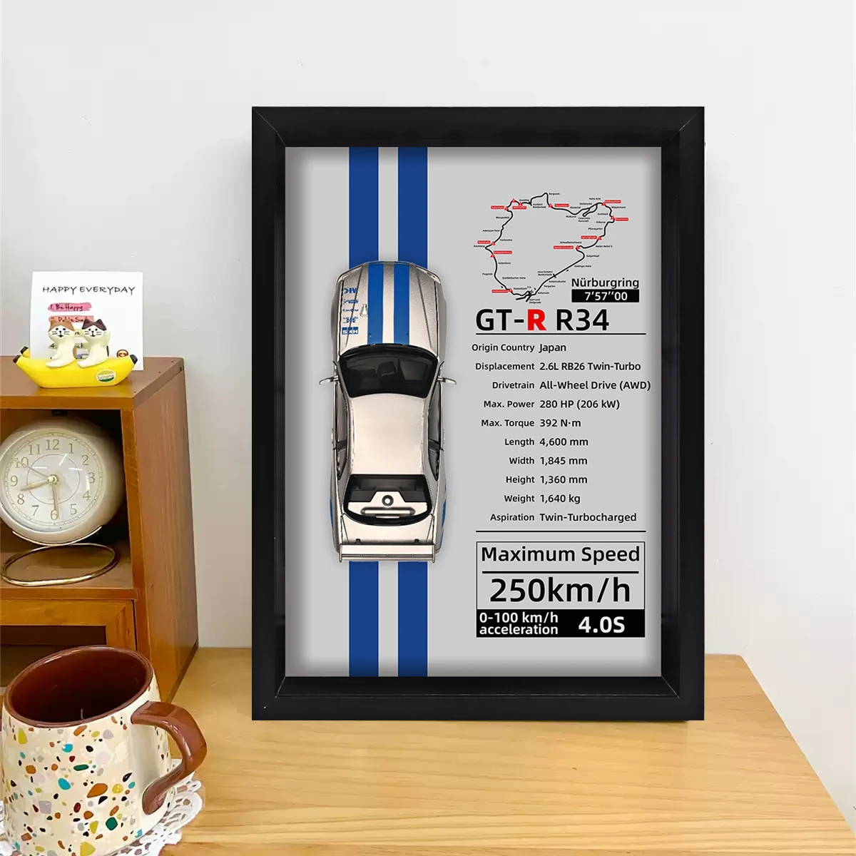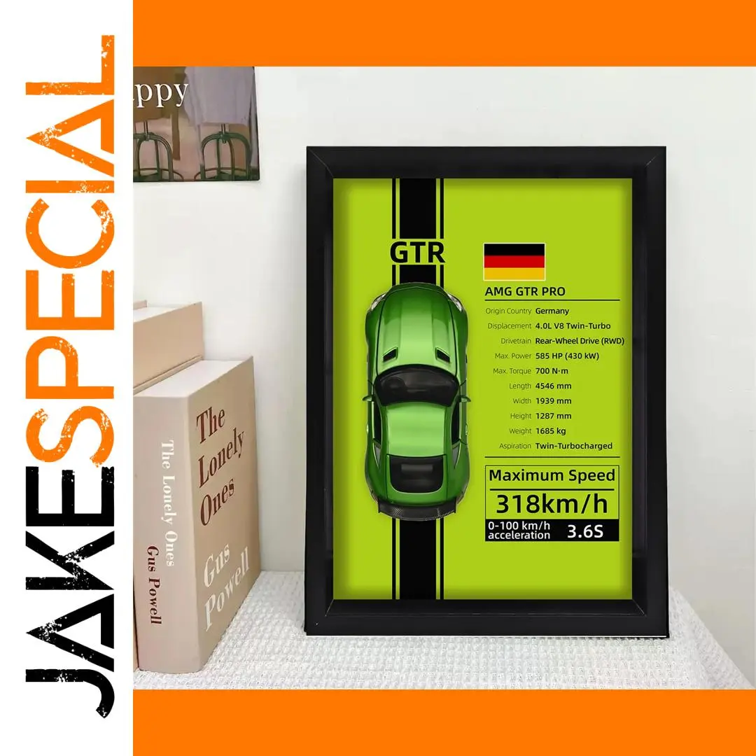 Bring the sleek, powerful essence of the green AMG GTR PRO right into your space with this meticulously crafted 3D diecast car model. Standing approximately 15 cm long and designed with authentic details, it captures the aggressive, sporty stance of the original. The model's alloy body, ABS chassis, and rubber tires ensure durability and realistic appeal. Paired with a vibrant lime green and black highlight photo frame, this display combines modern aesthetics with precision craftsmanship. The black road marking accents enhance the dynamic vibe, making it perfect for enthusiasts, collectors, or as a conversation-starting decorative piece. Its high-quality materials and detailed design make this set an impressive addition to any home, office, or display collection.