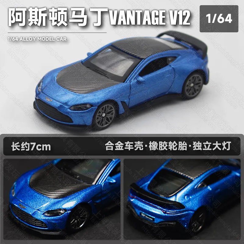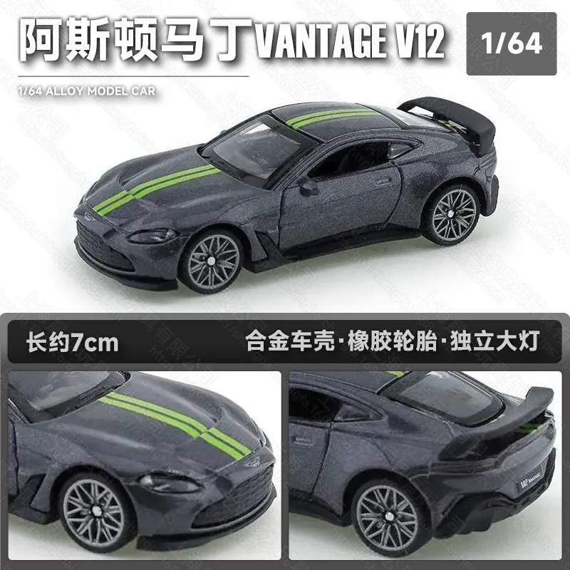 - Represents a 1:64 scale diecast model of the Aston Martin V12, showcasing a sleek, aerodynamic body with realistic fine details for true-to-life appeal.