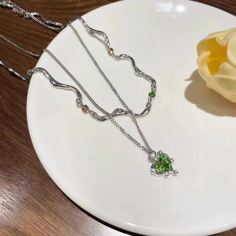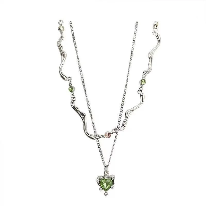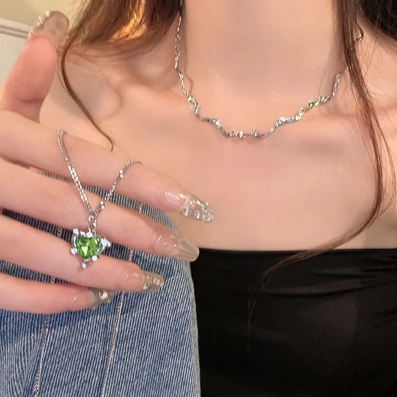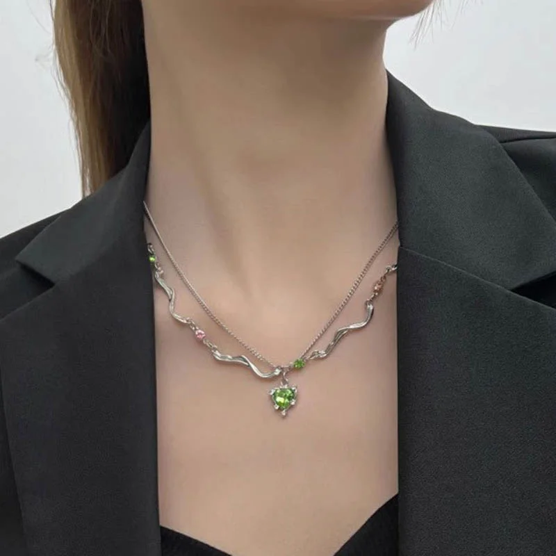 Imagine elevating your summer wardrobe with this stunning layered necklace that perfectly blends trendy Y2K fashion with a touch of edgy elegance. Featuring a vibrant green crystal heart pendant, measuring 1-5cm, it adds a pop of color and sparkle to any outfit. The choker-style link chain, crafted from durable zinc alloy, offers a bold, punk-inspired look, while the delicate layered design enhances your youthful, fashionable vibe. Whether you're going out with friends or attending a special event, this necklace captures a modern, trendy aesthetic that feels personal and unique. Enjoy the confidence that comes with wearing an eye-catching accessory designed to match your vibrant style and personality.