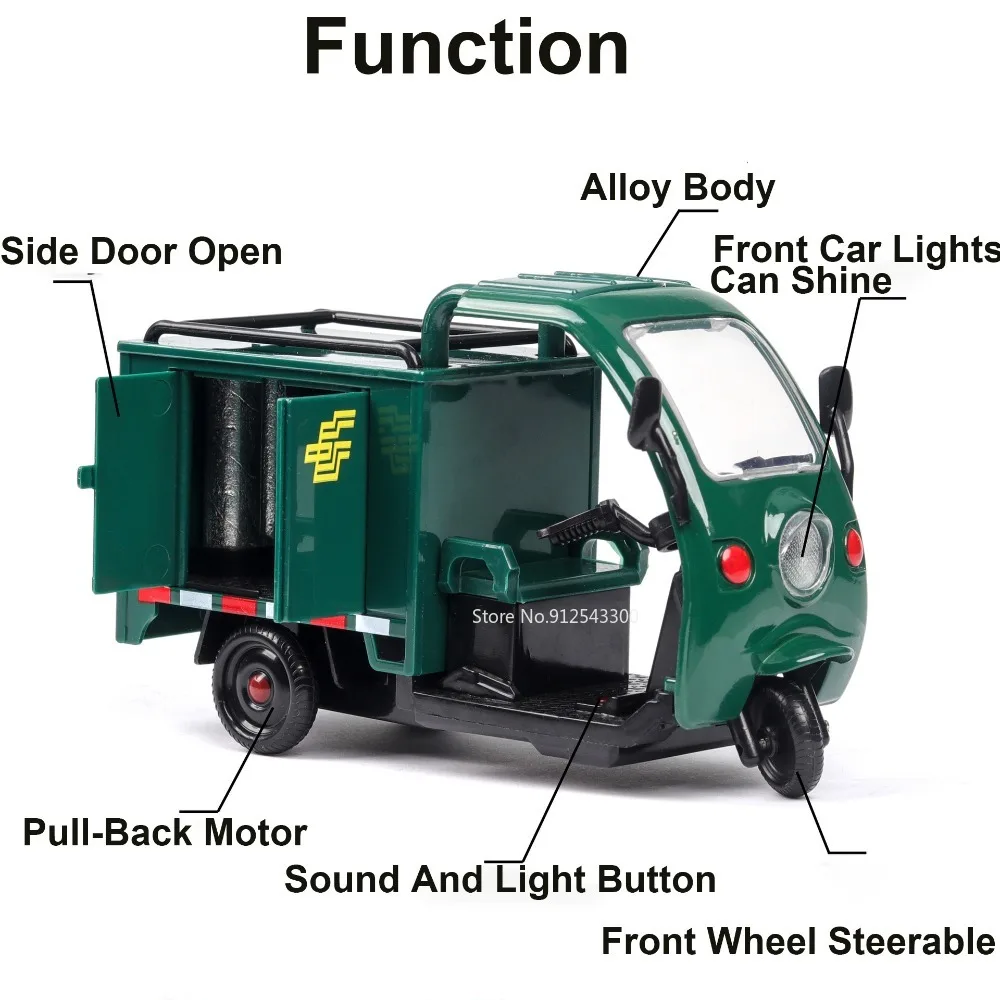 Envision yourself showcasing this charming, detailed delivery tricycle model, or gifting it to a passionate collector. Its realistic design and engaging features make it a wonderful addition to any collection or display. Crafted with a focus on durability and authenticity, this miniature will bring joy and admiration from all who see it. Don't miss the chance to own this highly detailed, functional replica that combines aesthetic appeal with interactive features — a perfect gift or display piece for enthusiasts who appreciate quality craftsmanship.