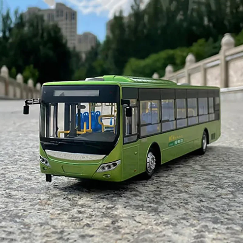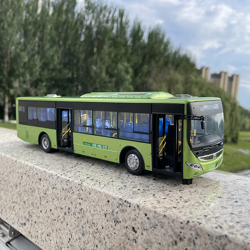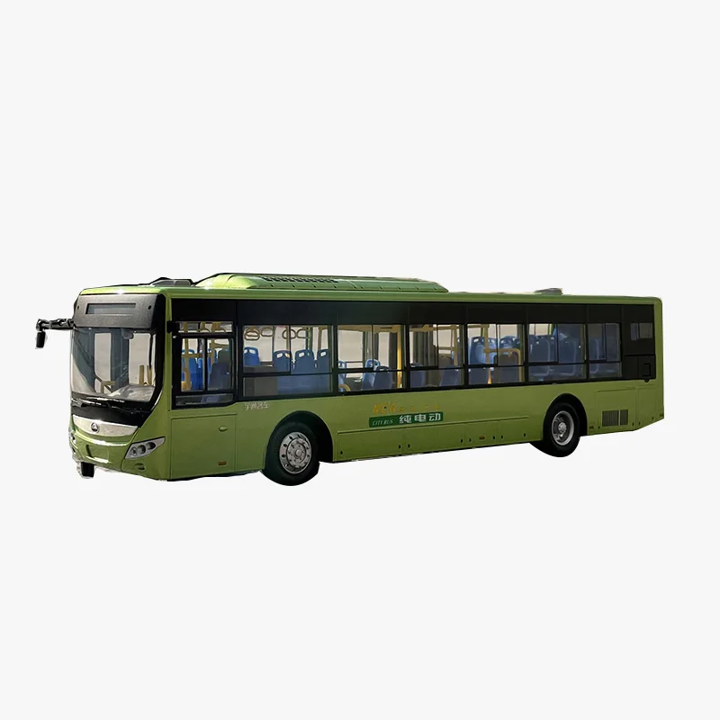 This highly detailed 1:42 scale model of the E12 new energy bus showcases a vibrant green alloy and ABS construction, measuring approximately 28 cm in length, 7.5 cm in width, and 7 cm in height. It features functional front and rear doors, an openable trunk, a sliding driver’s side window, and steerable rubber wheels with detailed silver hubcaps. The sleek, modern design includes realistic elements such as door handles, side mirrors, and route markings, offering an authentic urban vehicle appearance. Crafted for collectors aged 14 and above, this well-crafted miniature promises a durable, high-quality finish perfect for display or gifting.