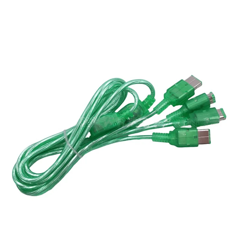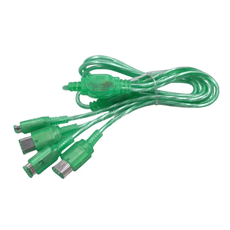 Experience the joy of gaming with this visually striking green four-player battle cable splitter, designed specifically for Gameboy GBC, GBP, and GB consoles. Its transparent plastic shell beautifully showcases the internal wiring, adding a touch of modern tech appeal. Measuring 1.5 meters long, this cable provides ample reach for lively multiplayer sessions, whether at home or with friends. Its minimalist design emphasizes functionality, with textured grip areas on rectangular connectors for secure handling. Compatible with GameBoy Color, Pocket, and original models, it allows up to four players to connect simultaneously for seamless gaming or device charging. Durable and stylish, this cable is perfect for avid gamers who value both aesthetics and performance.
