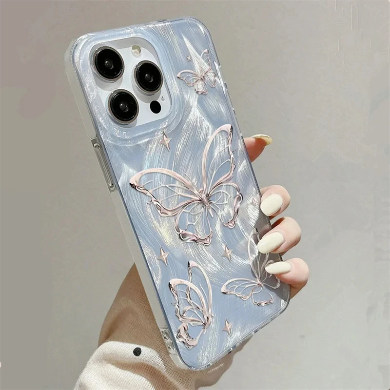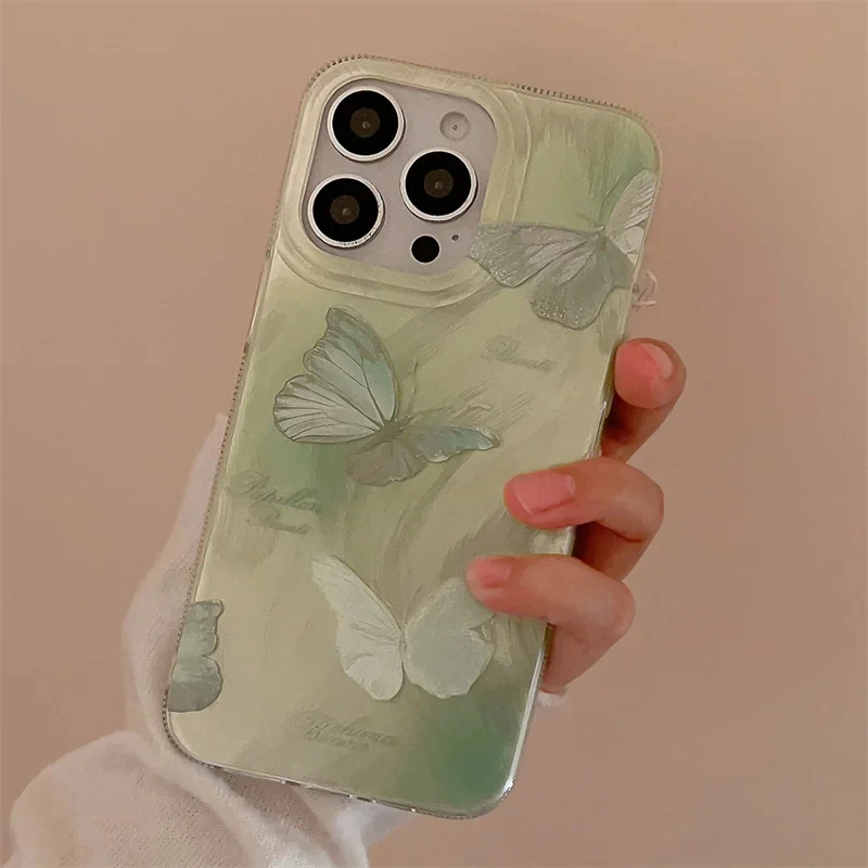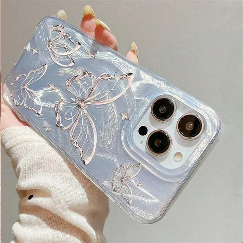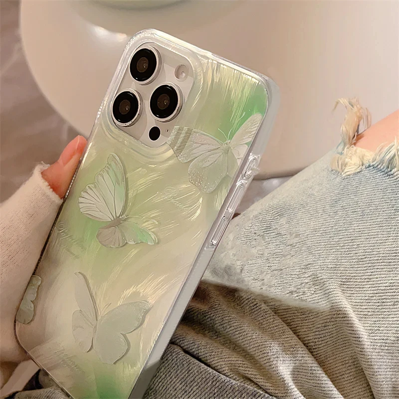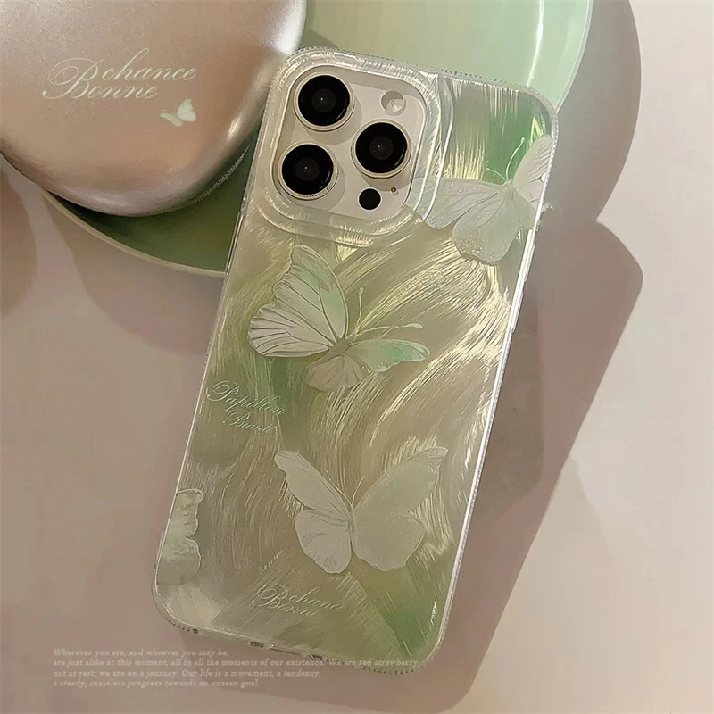 Imagine wrapping your iPhone in a unique accessory that reflects elegance and personality. This stunning case features a vibrant green gradient background that seamlessly transitions through shades of lush green, adding a refreshing and energetic vibe. Delicately decorated with a beautiful butterfly motif in soft pastel pink, the raised, intricately detailed wings bring a touch of femininity and charm to your device. Scattered tiny star-like accents add a whimsical sparkle, perfect for those who love playful, eye-catching accessories. The high-quality, semi-transparent plastic design ensures a glossy, iridescent finish that shimmers under light, making your phone look like a piece of art. With full coverage, this case offers reliable protection while enhancing your style effortlessly.
