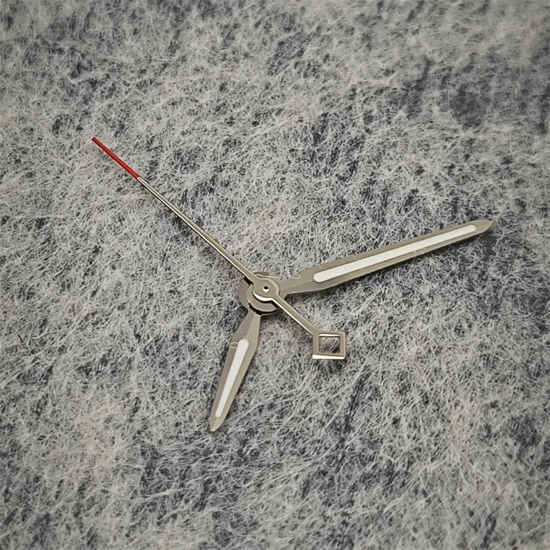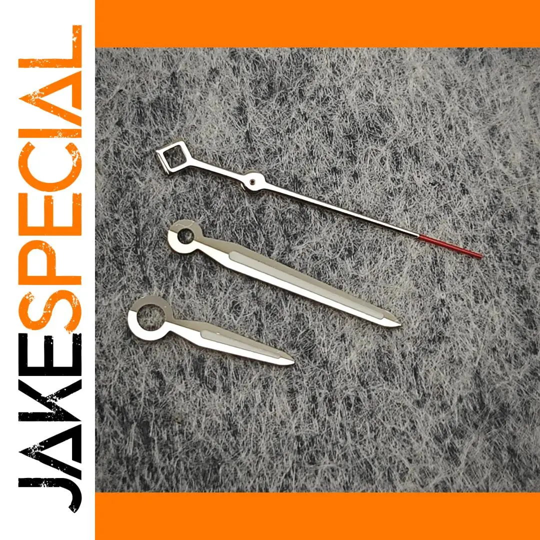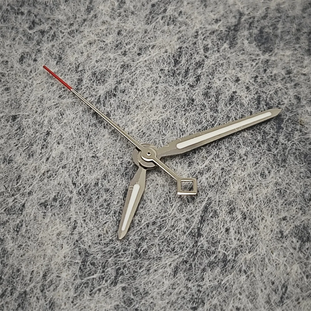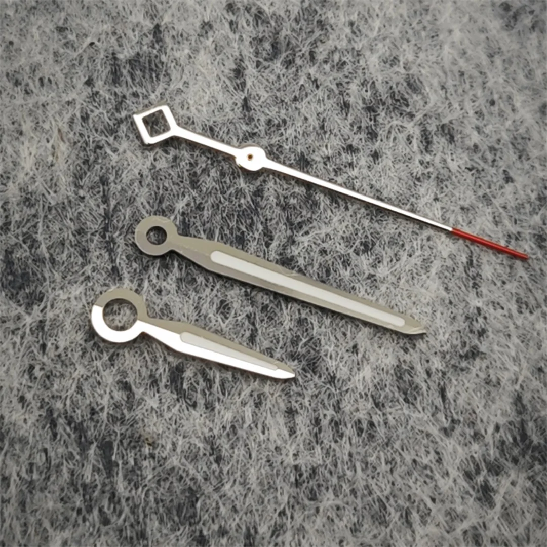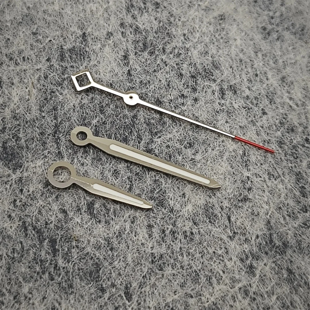 Enhance your watch with this high-quality stainless steel luminous hand set, compatible with NH35, NH36, 4R, and 7S movements. The set includes a precise second hand measuring 8 mm in width, 12.5 mm in length, and 13 mm in height, featuring a luminous green segment and a red tip for improved visibility in low light. Designed as a sleek modification accessory, these minimalist hour and minute hands complement various watch styles with their polished silver finish and functional circular attachment holes. Elevate your watch customization with these durable, precision-crafted hands for a modern, understated look.