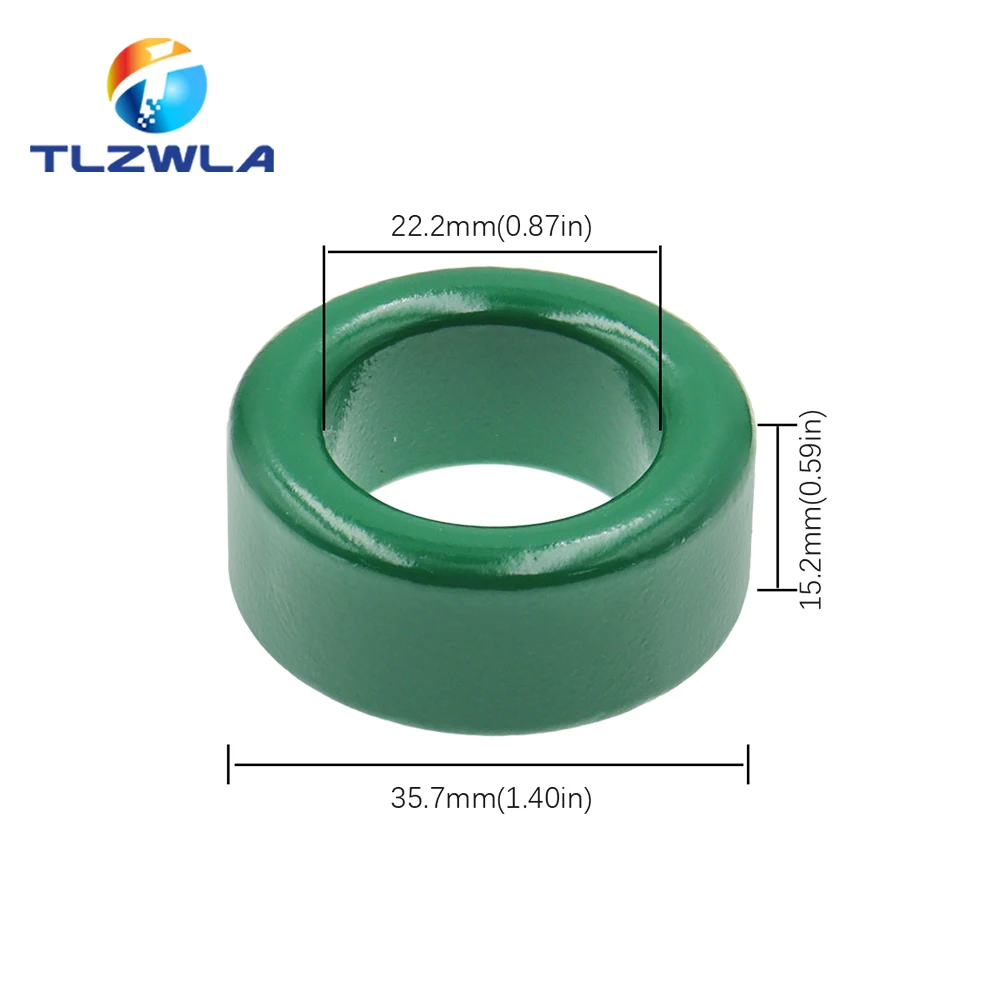 Immerse yourself in the quality and precision of this set of ten green manganese zinc ferrite magnetic rings, each measuring 36x23x15mm. Coated with smooth, glossy insulation paint, these toroidal rings combine durability with an attractive finish that reflects light beautifully. Designed for electronics enthusiasts and professionals, they serve vital functions such as anti-interference, filtering, inductance, and transformer applications. Their non-magnetic nature ensures optimal performance in sensitive circuits, while the uniform thickness and clean edges demonstrate meticulous manufacturing. These rings’ vibrant green color adds a touch of modern style to your setup, making them stand out in your collection of electronic components. They promise both practicality and aesthetic appeal for your projects.
