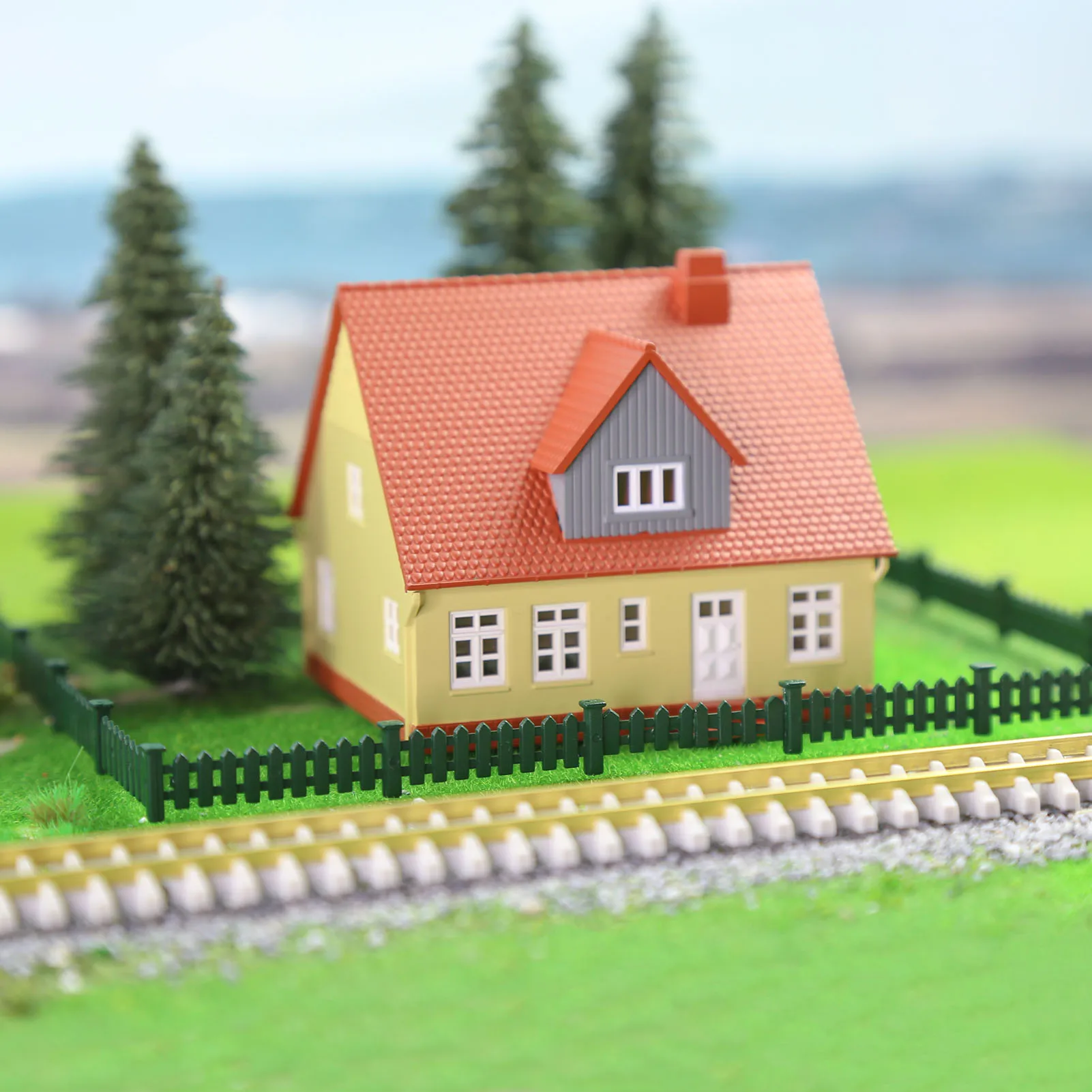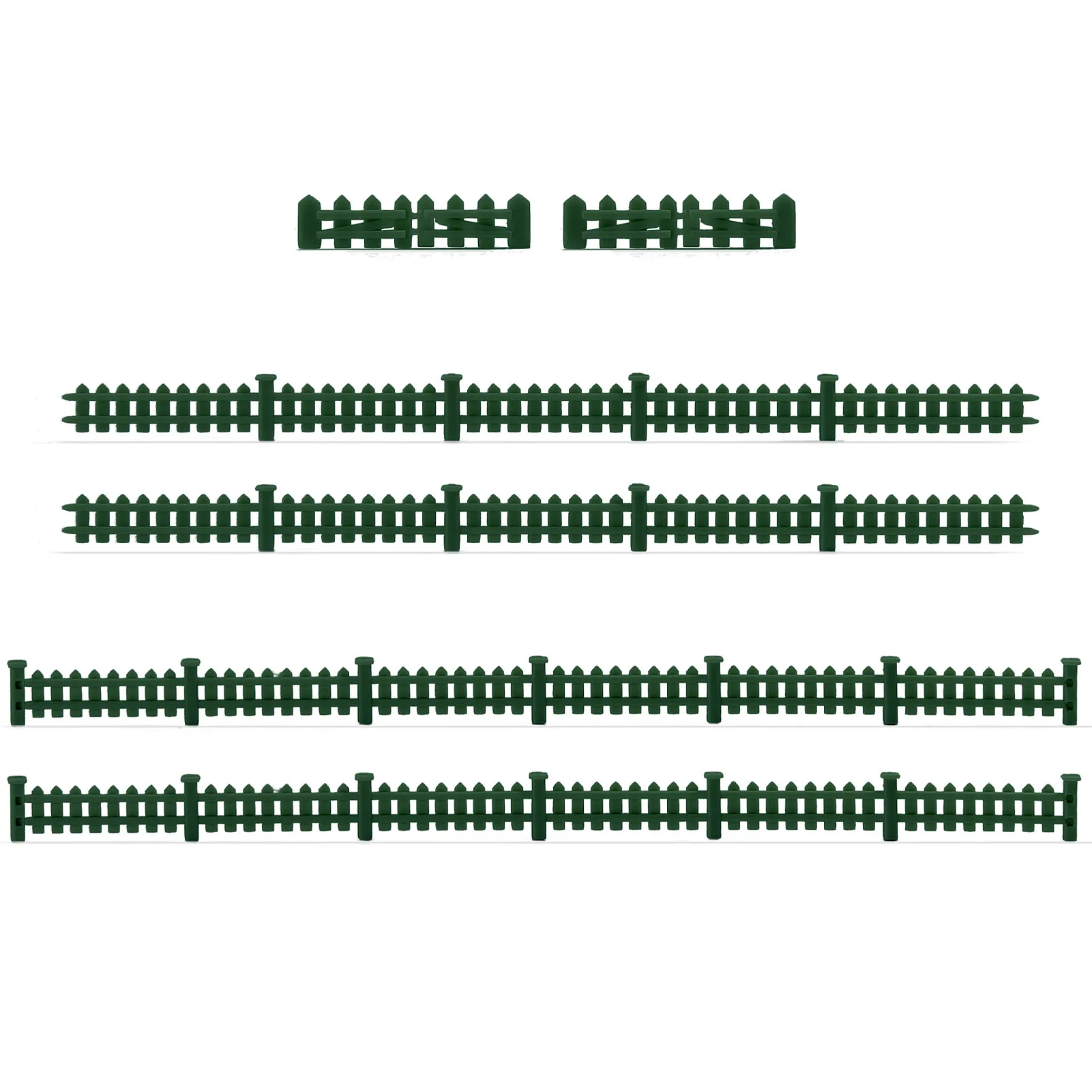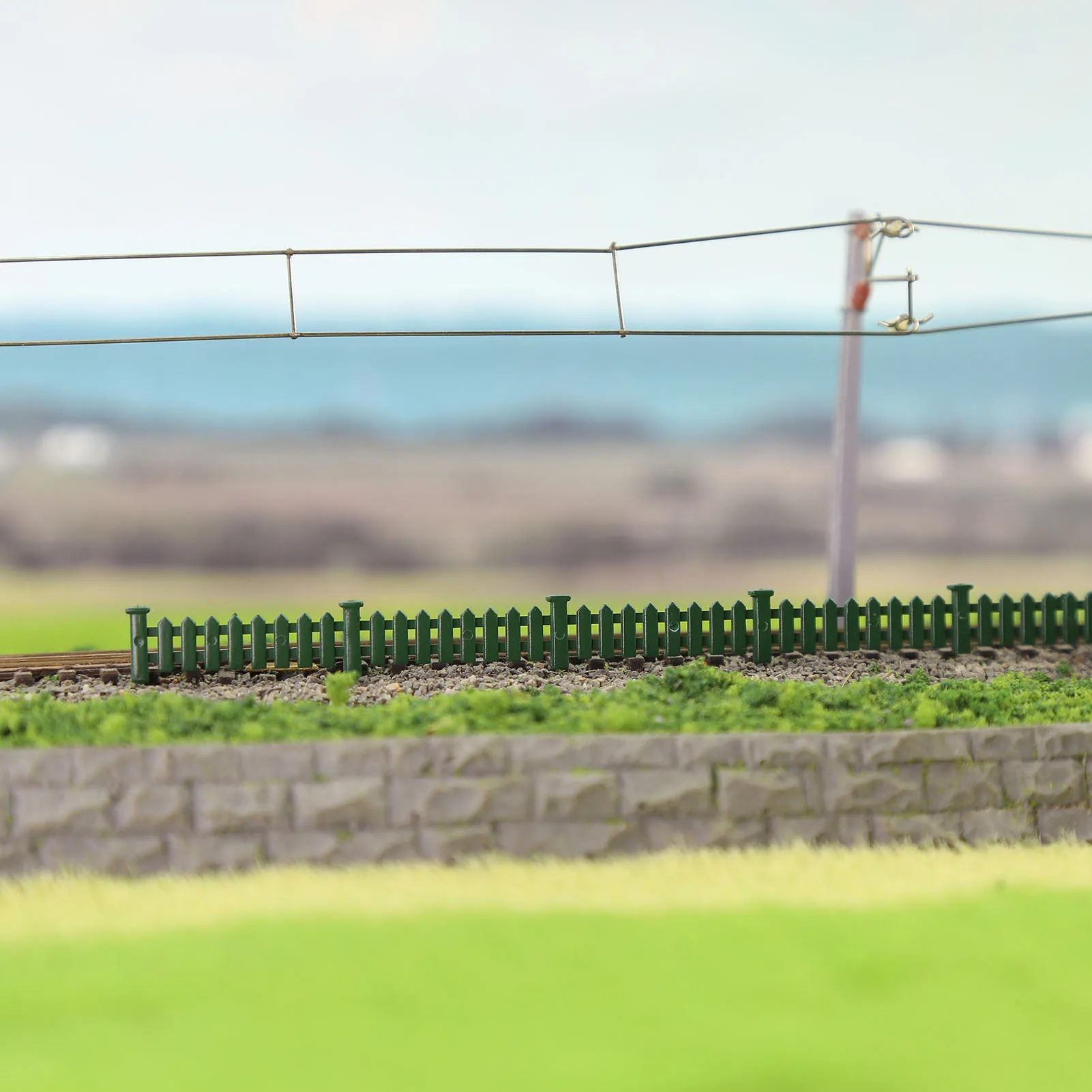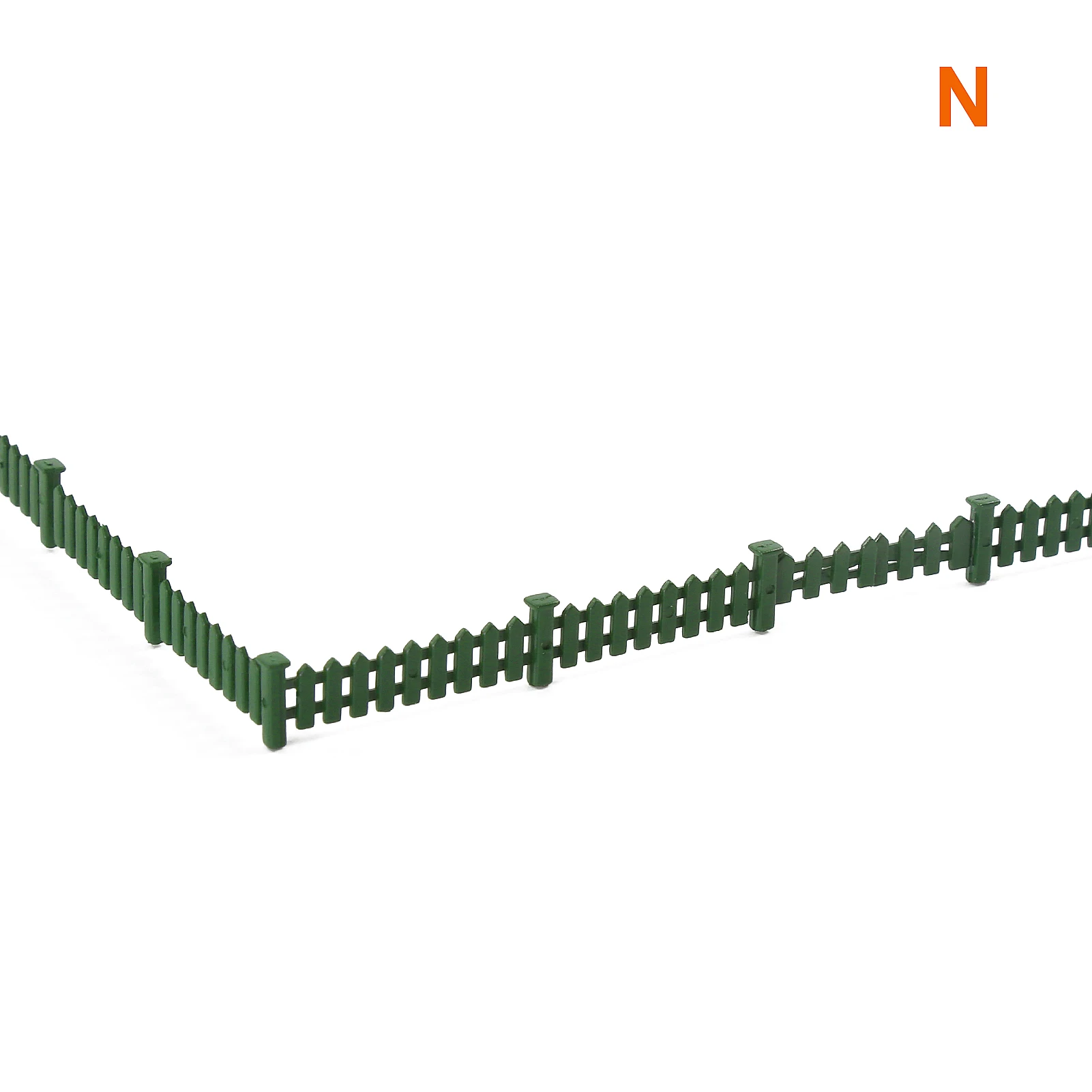 Transform your N scale (1:160) train layout with this realistic green plastic fence set by Evemodel, featuring detailed fences, gates, and wall sections. Crafted from durable polycarbonate (PC), these lightweight, flexible barriers are designed to mimic real wood or metal fencing with a slightly textured surface for added realism. The fences measure proportionally to fit seamlessly within your model scene, offering easy placement and gentle bending for natural-looking enclosures. Suitable for scales such as N and HO, these fences are perfect for creating realistic diorama environments and enhancing your model train layouts, making your miniature world more authentic and visually appealing.