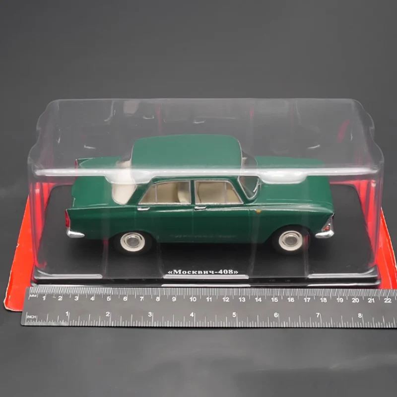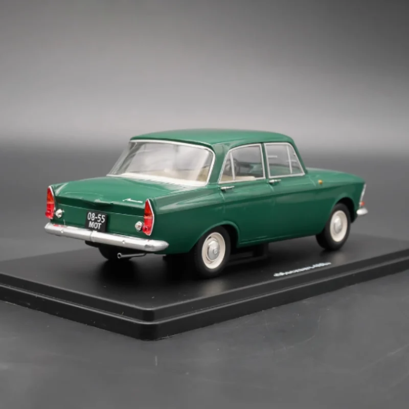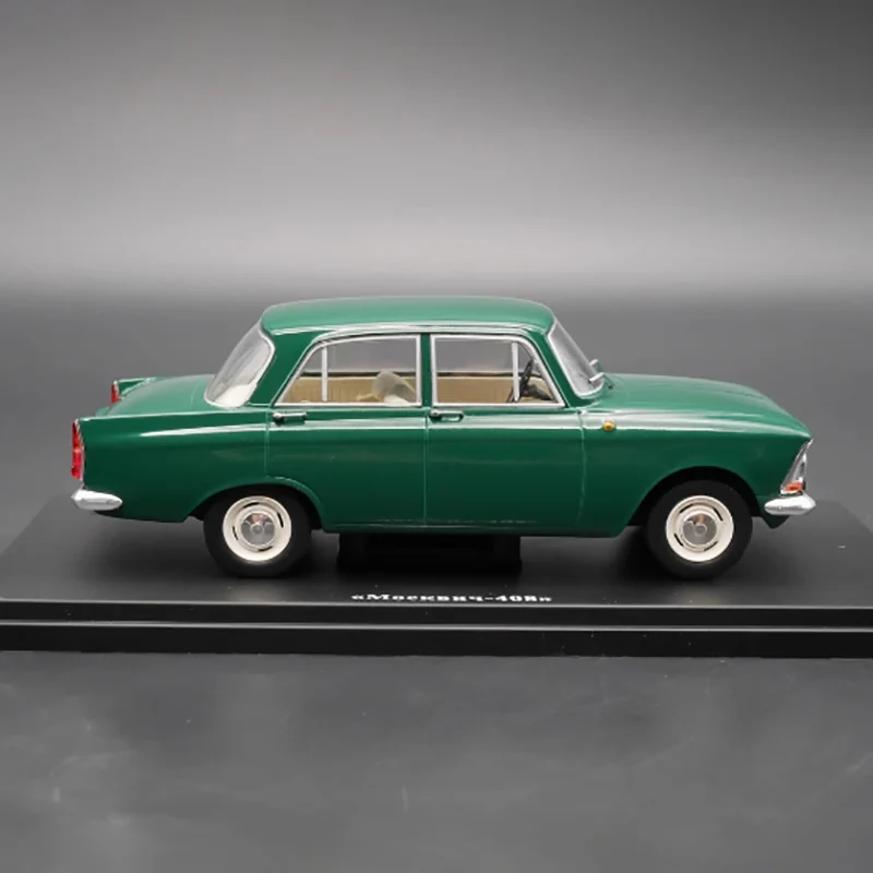 - 1:24 scale model crafted from high-quality alloys and plastics, with detailed exterior features capturing the vintage design of the Moskvich 408.