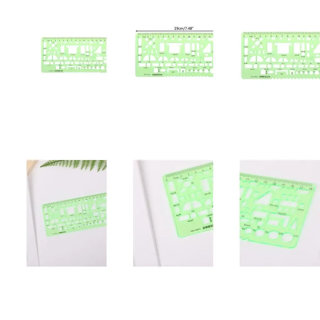 Enhance your drawing precision with this 15 cm transparent green plastic template ruler, featuring decimal and fractional measurement scales. It includes four functional templates—circles, squares, triangles, and hexagons—perfect for school, technical drawing, and design projects. Crafted from non-toxic plastic, the ruler displays clear, sharp lines for accurate shape tracing and measurement. Its minimalist, vibrant design combines practicality with style, providing a reliable tool for artists, students, and professionals. Please note, it’s not foldable and contains sharp parts, making it unsuitable for children under 3 years old. Simplify your creative process with this versatile, durable drawing aid.