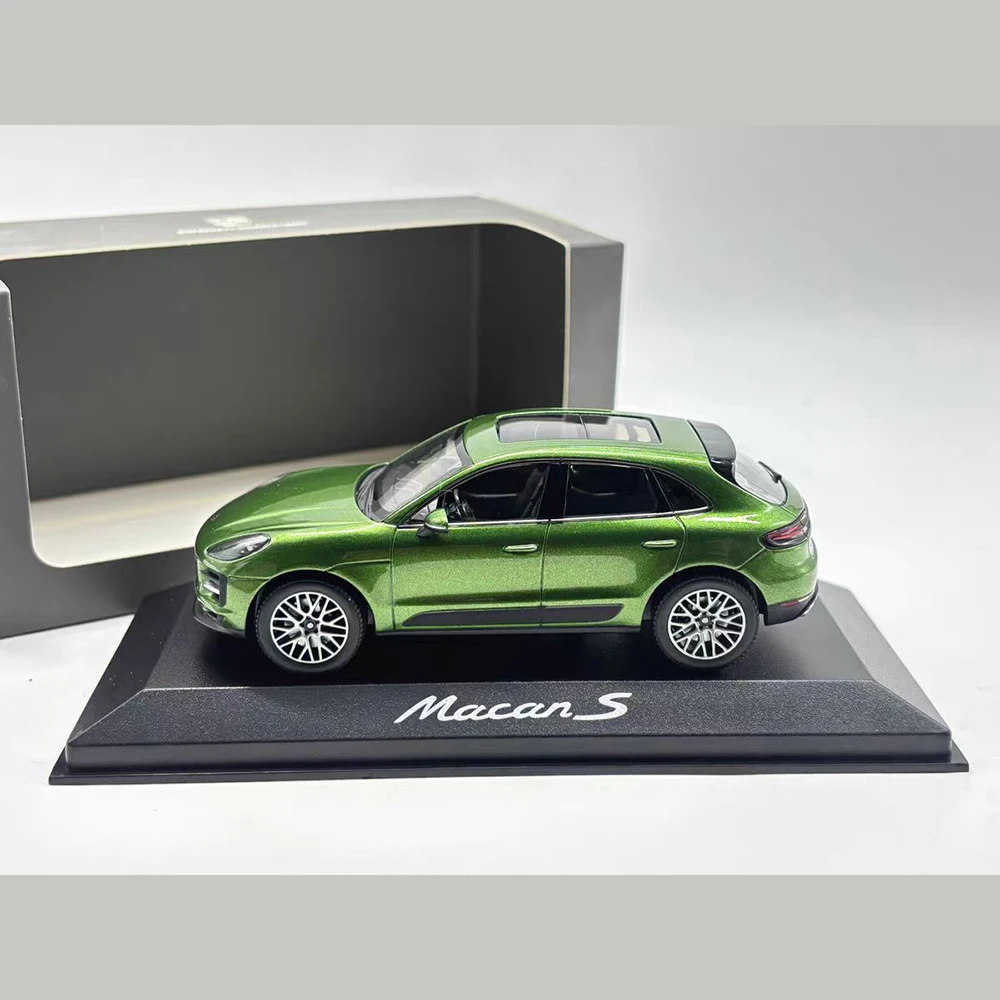 This detailed 1:43 scale diecast model of the Porsche Macan S 2018 features a vibrant green alloy, plastic, and rubber construction, capturing the sleek design with smooth body lines, elongated headlights, and a sculpted hood. The model includes multi-spoke alloy-style rims in contrasting metallic silver and a sunroof or panoramic glass panel. It is a static collectible suited for display, gifts, or hobby enthusiasts, measuring approximately 1:43 in scale with a fully enclosed body and non-rotating wheels. Packaged in a color box, this finely crafted miniature offers an authentic and visually appealing representation of the original vehicle, perfect for car collectors and enthusiasts.