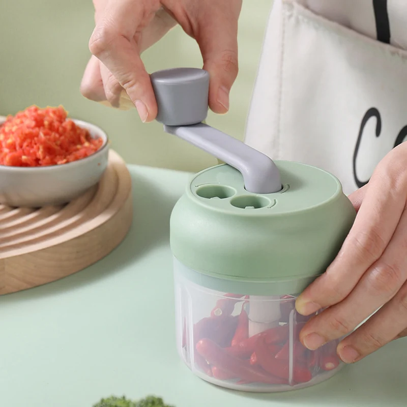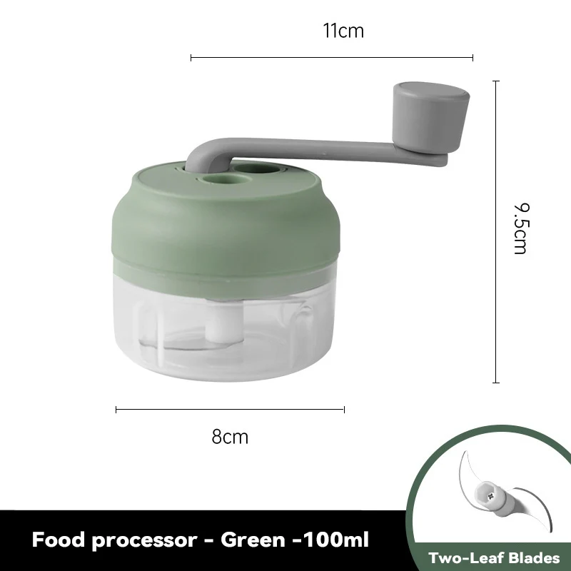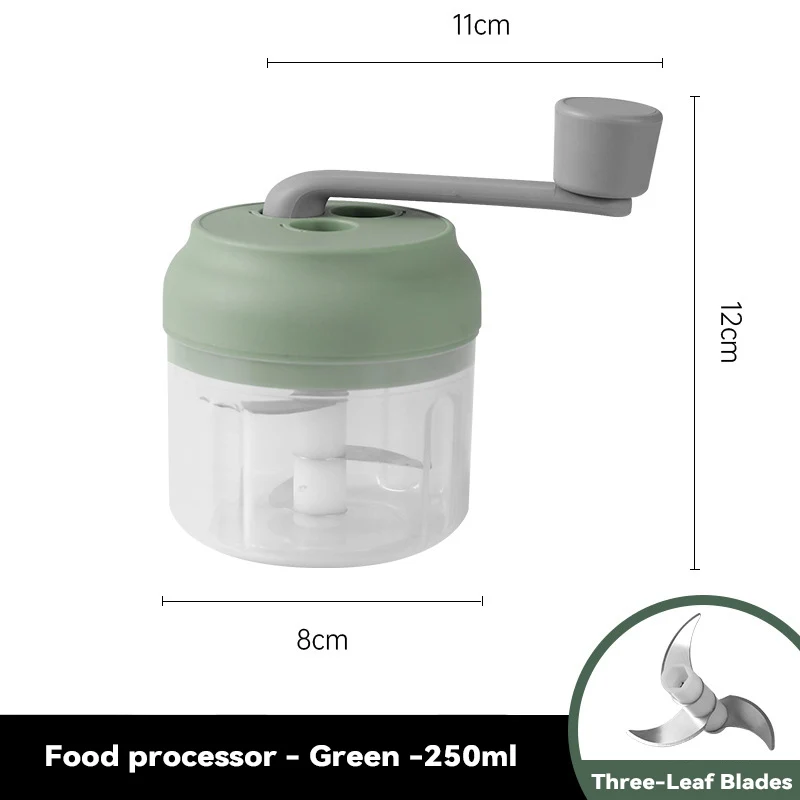 Imagine effortlessly preparing fresh garlic or vegetables with this modern, compact garlic grinder. Its ergonomic, cylindrical design fits comfortably in your hand, allowing for easy operation. The transparent lower half reveals your chopped ingredients at a glance, adding a touch of practicality to your culinary routine. Crafted from eco-friendly ABS, its smooth matte finish complements contemporary kitchen decor. Available in two convenient sizes—100ml and 250ml—you can choose the ideal capacity for your needs. The pastel green color adds a fresh, vibrant accent to your countertop. This multi-purpose food grinder makes meal prep faster, more enjoyable, and adds a stylish touch to your everyday cooking experience.