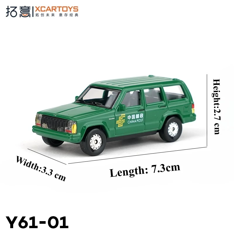 Imagine adding this meticulously crafted scale model of a green postal delivery truck to your collection, showcasing a sleek, glossy finish that resembles polished metal. Its compact, realistic SUV shape captures the essence of the actual vehicle, complete with detailed front grille accented in yellow and silver, and small rectangular headlights that add character. The sides proudly display crisp postal markings and Chinese characters, adding authenticity and visual appeal. With transparent windows revealing a simple interior, and four black tires with silver hubcaps, this model exudes craftsmanship and attention to detail. Measuring approximately 7.3 cm long, 3.3 cm wide, and 2.7 cm high, it’s the perfect decorative piece for enthusiasts who appreciate realism in miniature form.