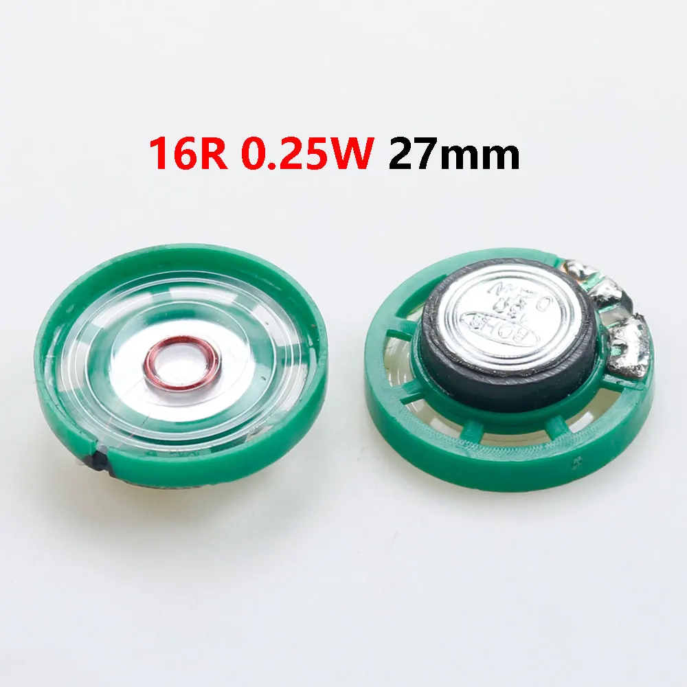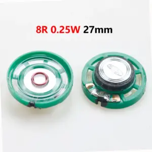 Imagine upgrading your small audio devices with ease, enjoying crisp, loud sound every time you activate your doorbell or toy car. This versatile speaker set, featuring two high-quality units, offers reliable performance across various applications. With resistance options from 8 to 32 ohms and power ratings between 0.25W and 0.5W, you're empowered to replace or enhance your current sound system effortlessly. Its durable plastic casing ensures long-lasting use while maintaining a compact size that fits seamlessly into tight spaces. Visualize the satisfaction of hearing clear, loud audio that elevates your everyday devices. Whether for a doorbell, toy car, or small audio project, this speaker delivers consistent, excellent sound quality you can trust, making your gadgets more enjoyable and functional.