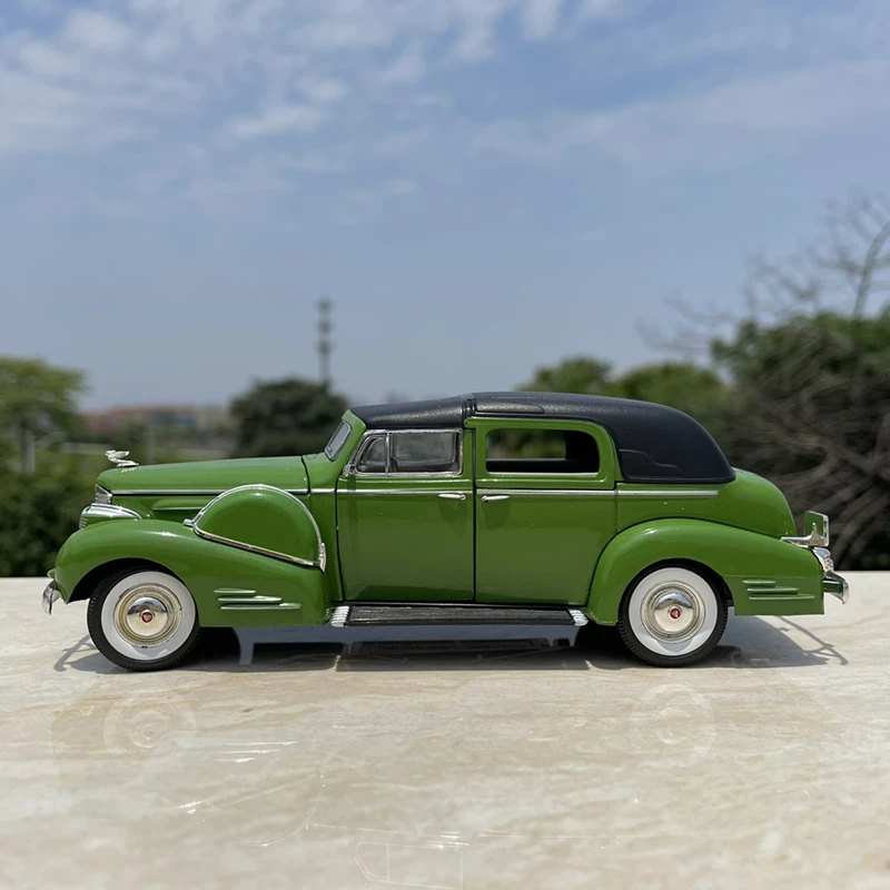 Immerse yourself in the nostalgic charm of this detailed 1:30 scale vintage-style car meticulously crafted from alloy and plastic. Its vivid green color, complemented by silver accents, captures the lively spirit of early 20th-century automobiles. The model features a sleek, retro design with smooth flowing lines, a polished silver grille, large metallic headlights with clear lenses, and finely detailed side mirrors and door handles. Its glossy green finish contrasts with a bold black roof, adding to its authentic appearance. Rims with detailed silver hubcaps, realistic tires, and subtle body contours complete this high-quality piece. Perfect for display, collectors or as a gift, this collectible combines craftsmanship and style for an immersive vintage experience.