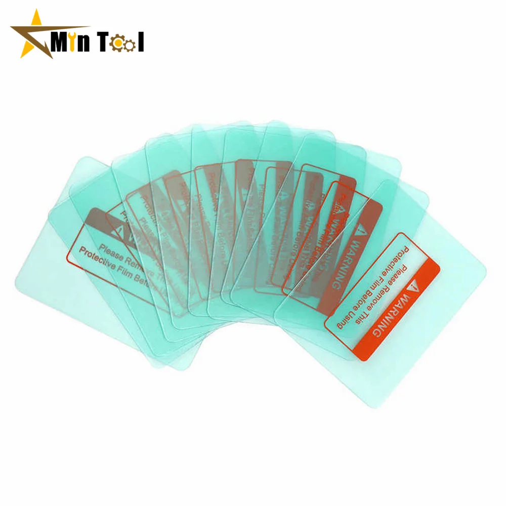 Experience superior protection and clarity with this set of green polycarbonate welding helmet lenses designed for auto-darkening masks. Crafted from durable, lightweight polycarbonate material, these rectangular lenses come in four sizes: 115mm x 95mm, 115mm x 90mm, 115mm x 85mm, and 108mm x 50mm, offering versatile compatibility. The high-definition, smooth surface ensures clear visibility while providing excellent toughness and resistance to breakage. Each lens features a protective film with bright orange warning text, which must be removed before use, maintaining safety standards. Ideal for professional welders, these lenses are built to withstand welding slag splashes, helping you work efficiently and safely. The lightweight design combined with robust materials makes them suitable for extended use in demanding conditions.